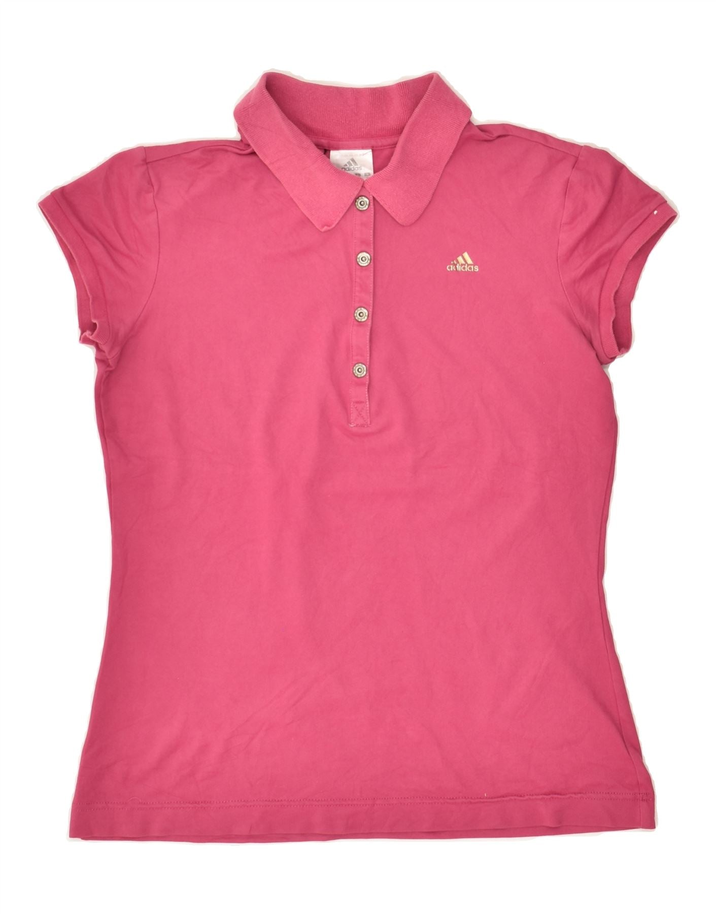 ADIDAS Womens Polo Shirt UK 12 Medium Pink Cotton