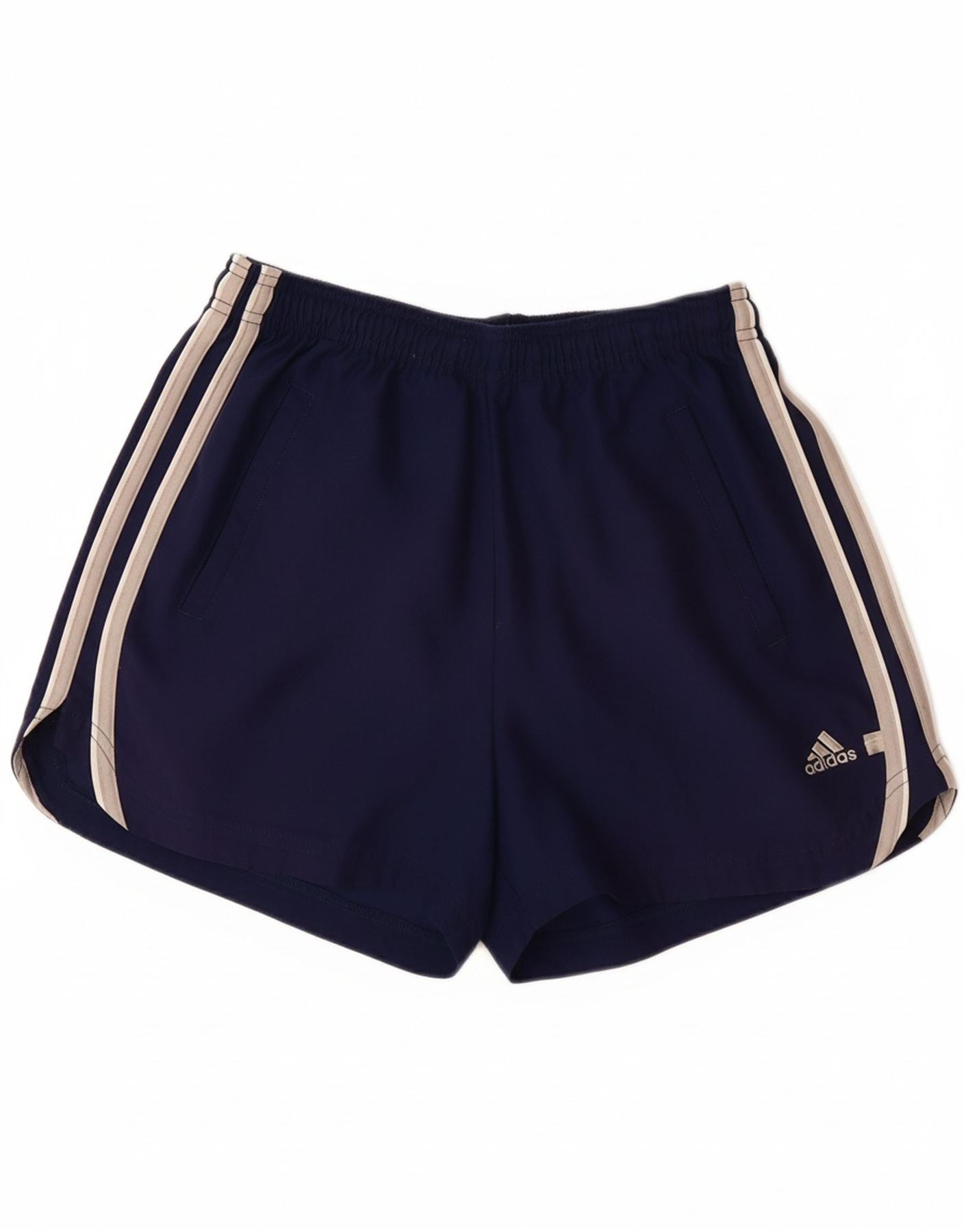 ADIDAS Damen Sportshorts UK 12 Medium Marineblau Polyester