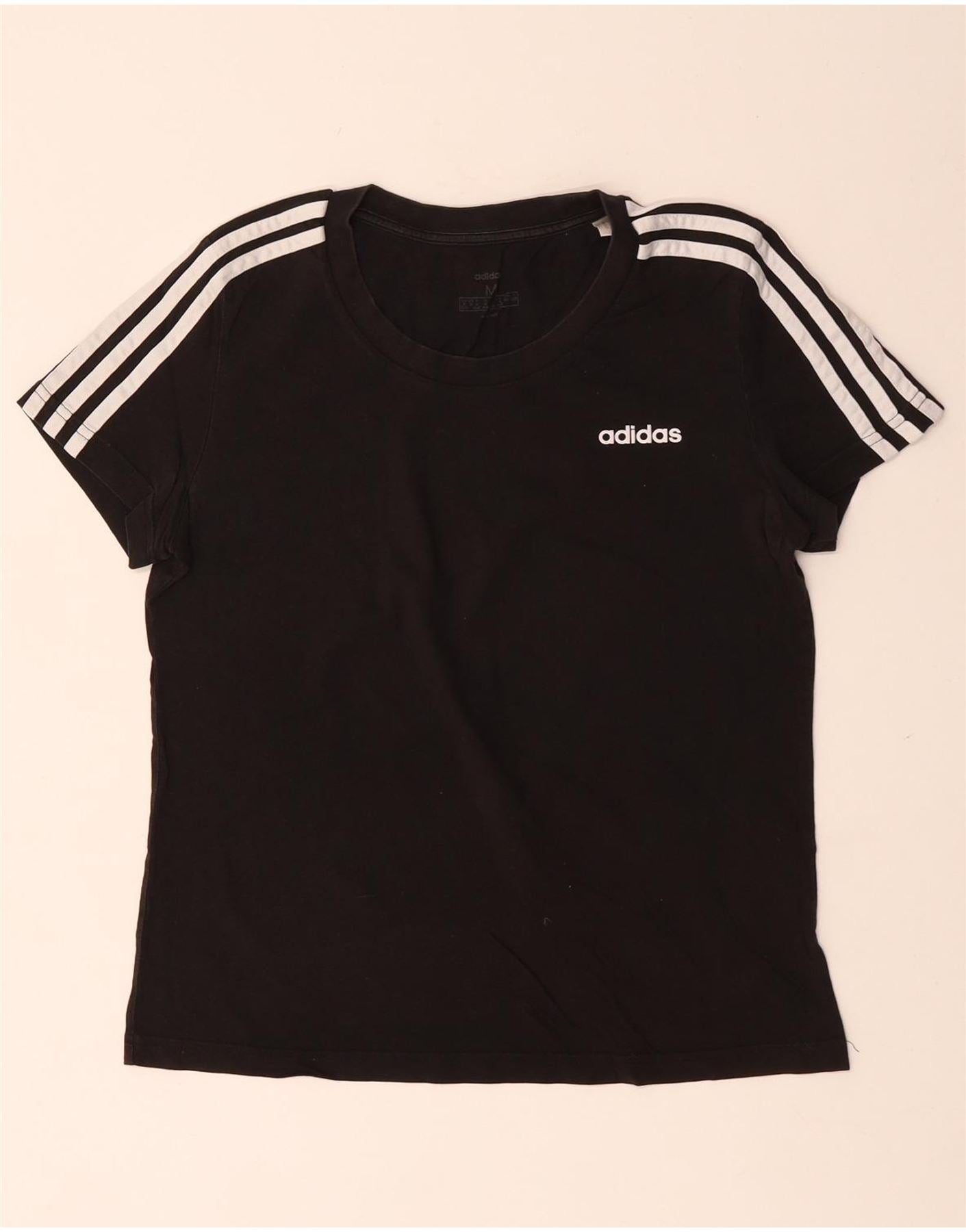 ADIDAS Damen T-Shirt Top UK 12/14 Mittelschwarze Baumwolle