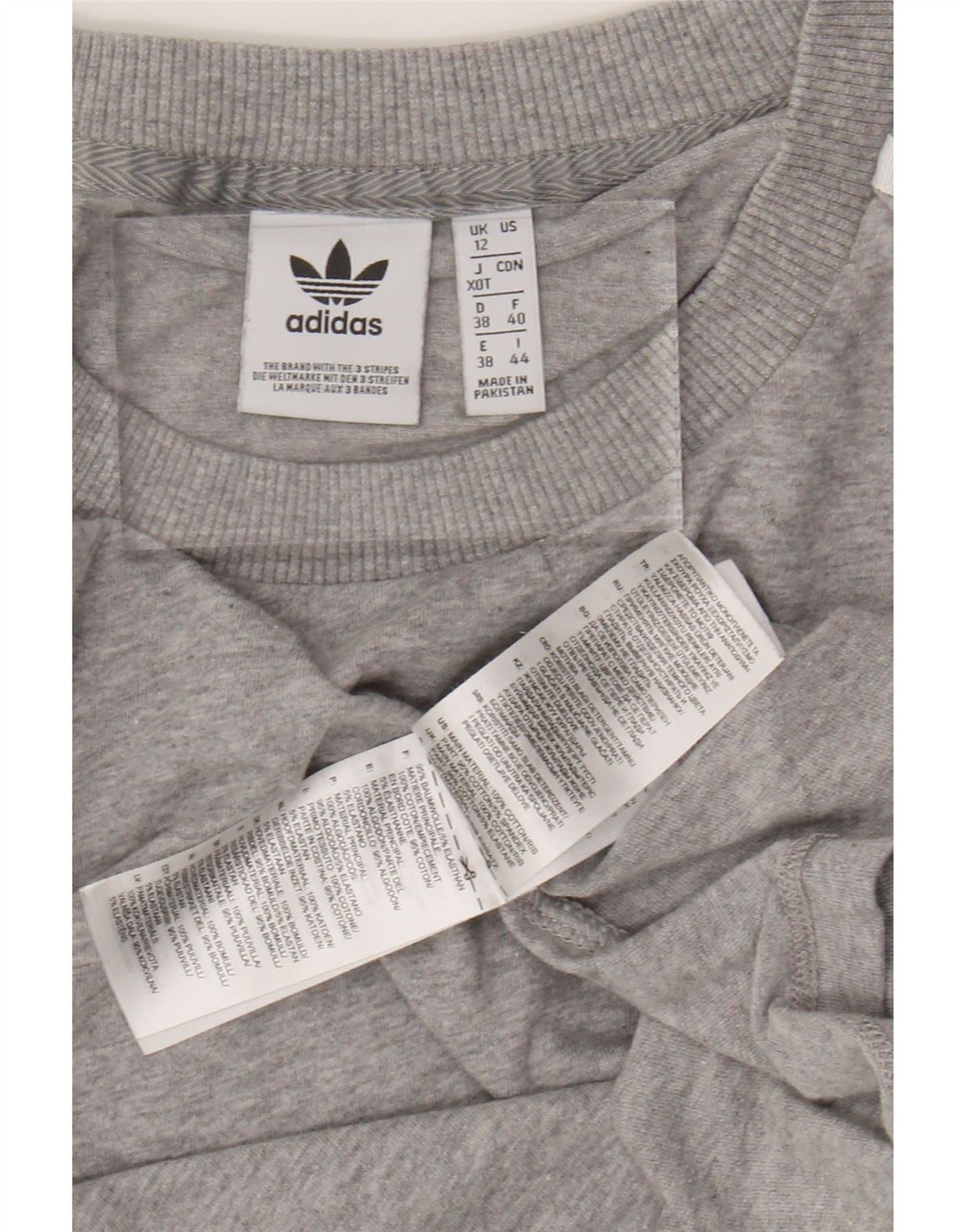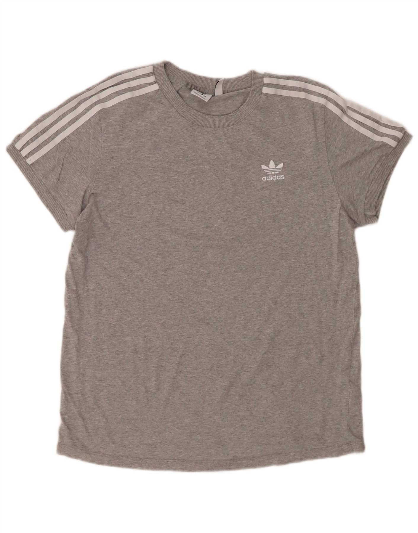 ADIDAS Damen T-Shirt Top UK 12 Mittelgrau gefleckte Baumwolle