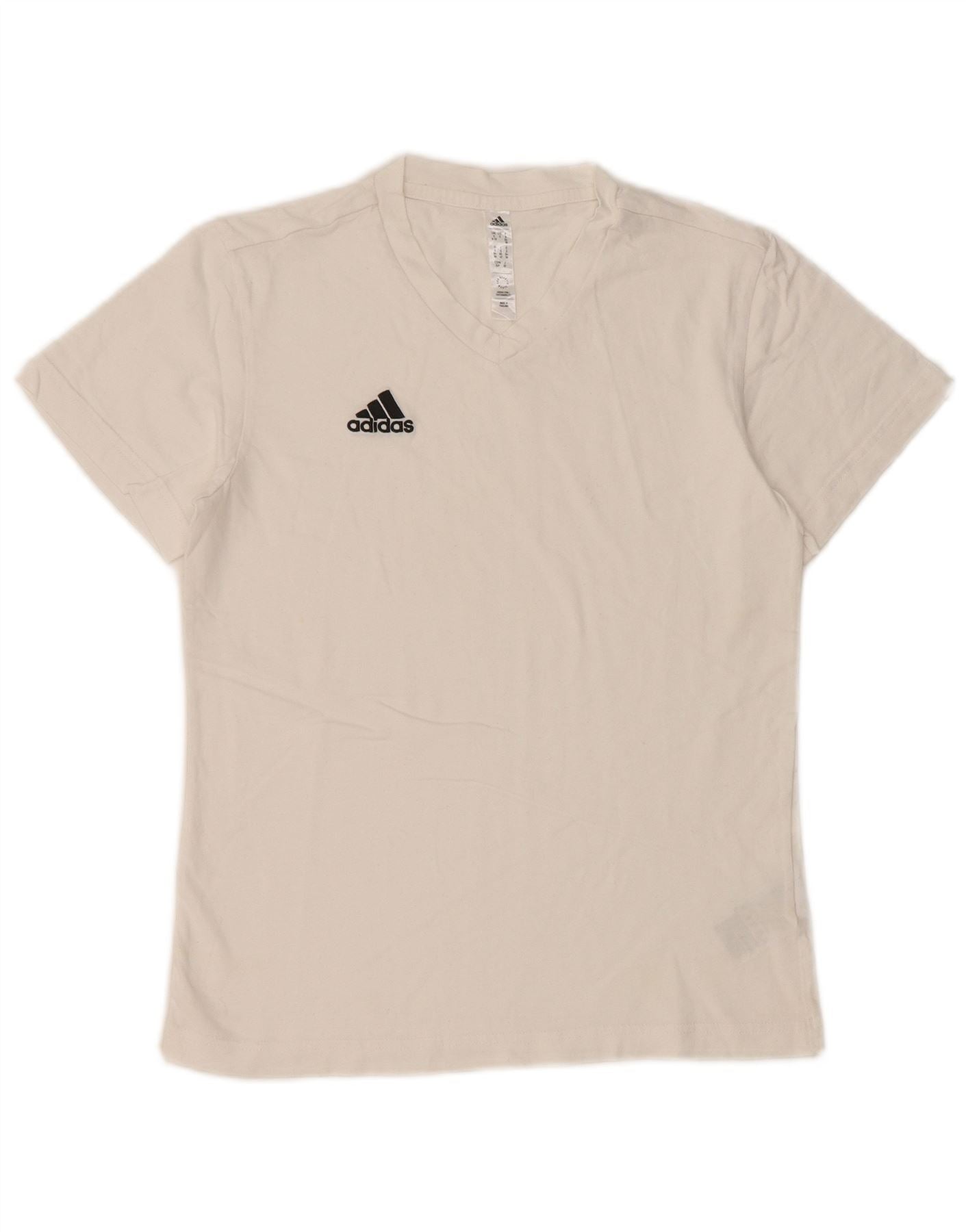 ADIDAS Damen T-Shirt Top UK 8/10 Small Weiße Baumwolle