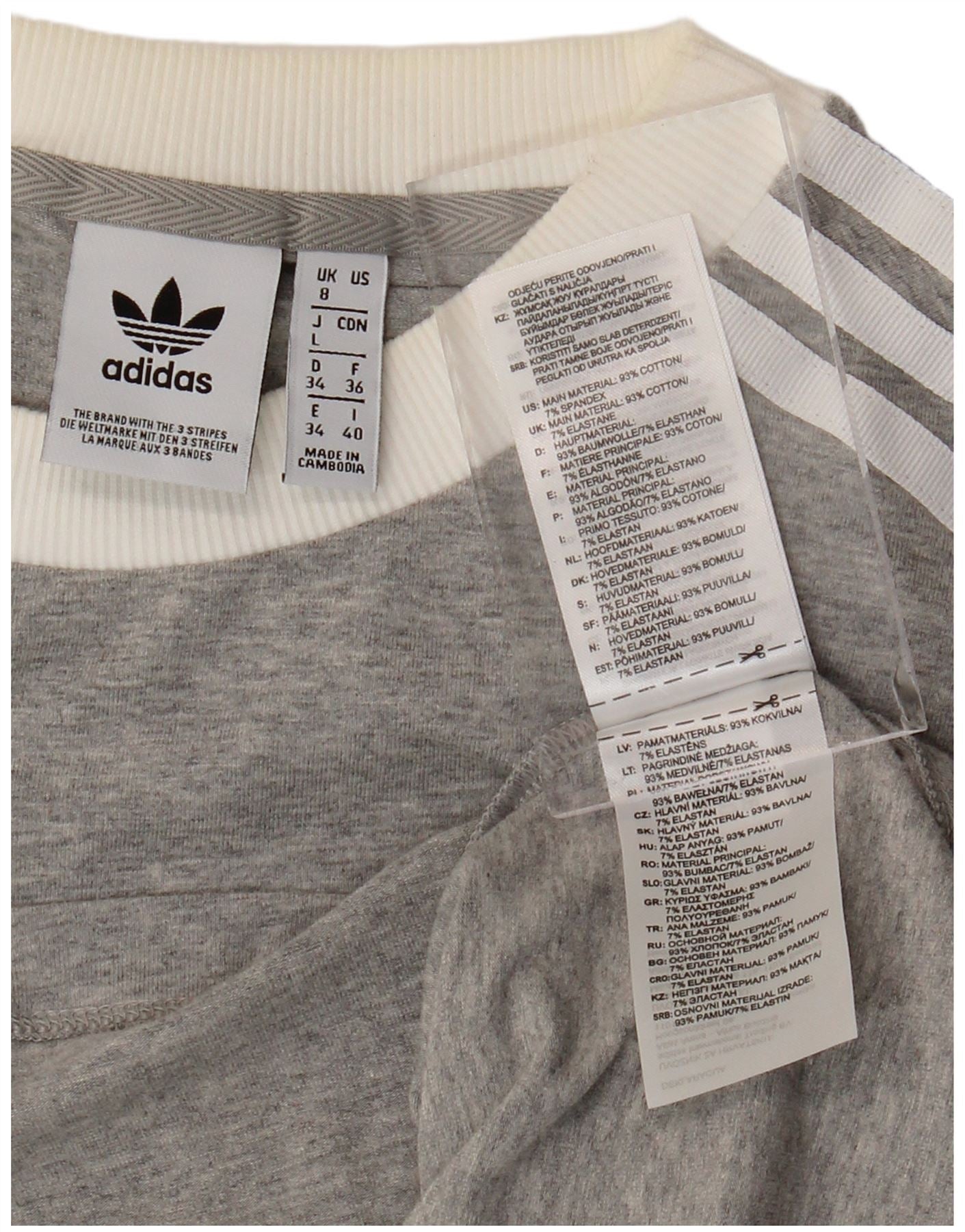 ADIDAS Damen Top Langarm UK 8 Small Grau gefleckte Baumwolle