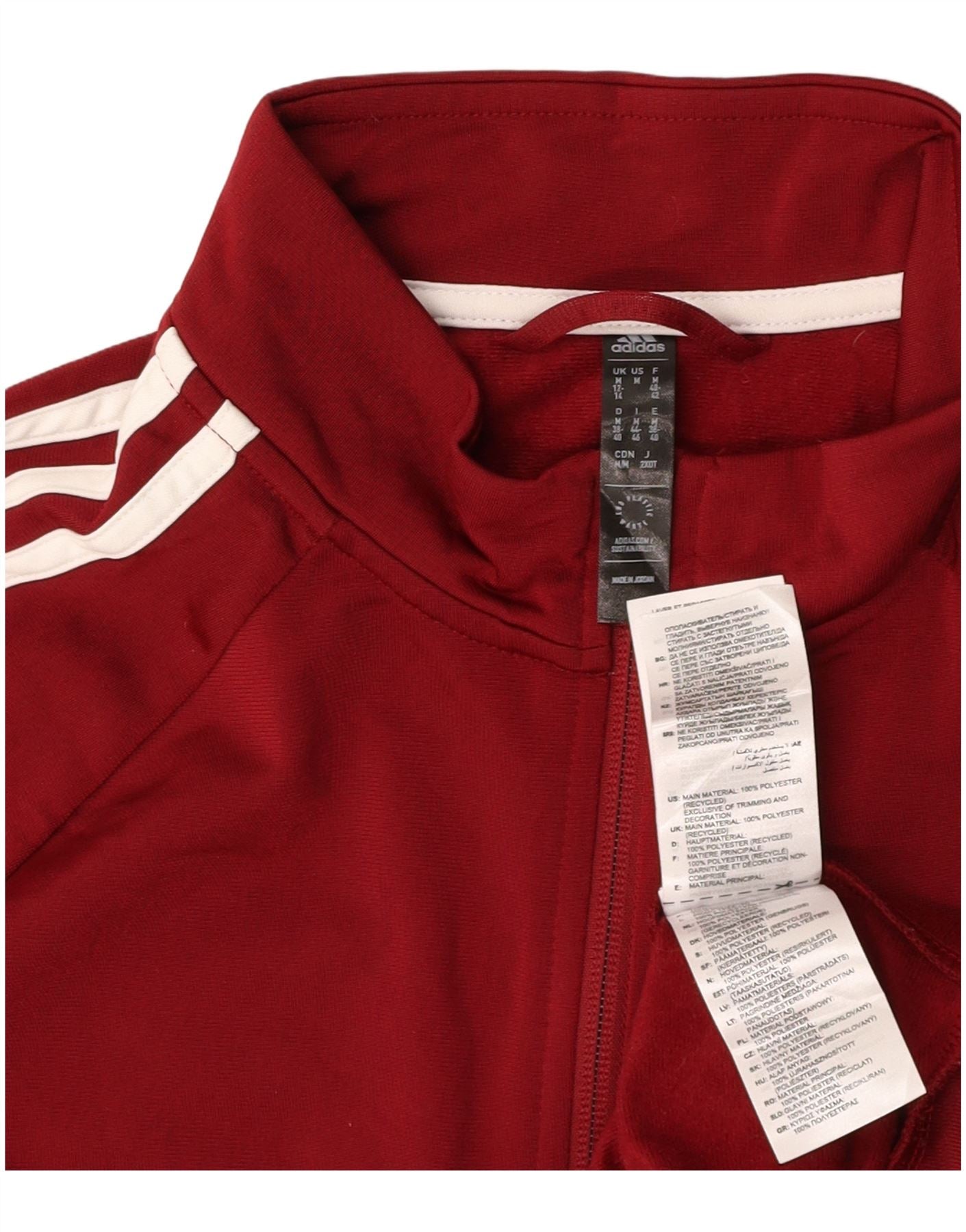 ADIDAS Womens Tracksuit Top Jacket UK 12/14 Medium Burgundy Polyester