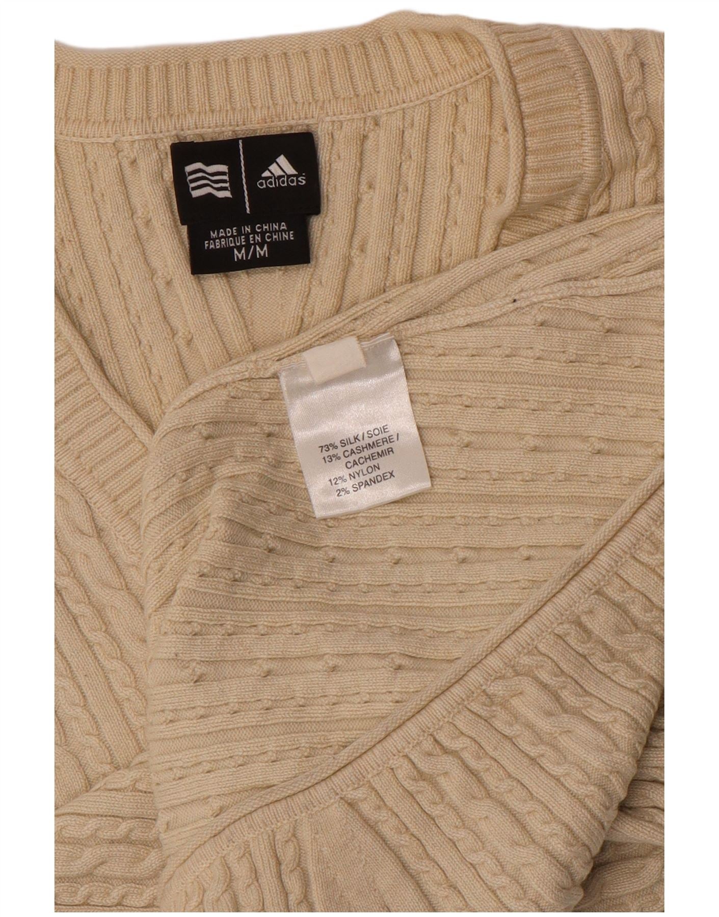 ADIDAS Damen-Pullover mit V-Ausschnitt, UK 12, mittelbeige Seide