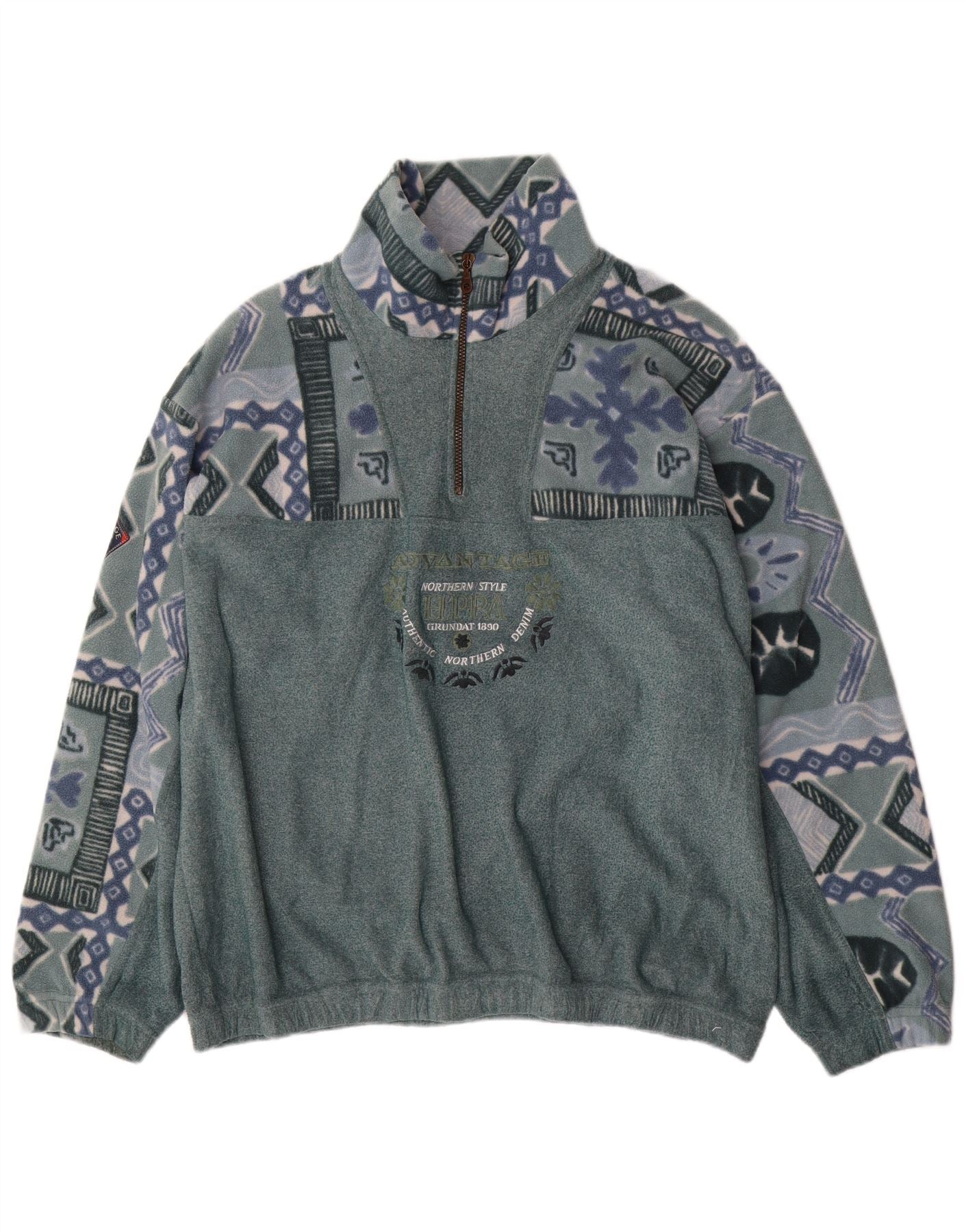 ADVANTAGE Herren-Fleecepullover mit grafischem Reißverschluss, XL, grün, geometrisch, Polyester
