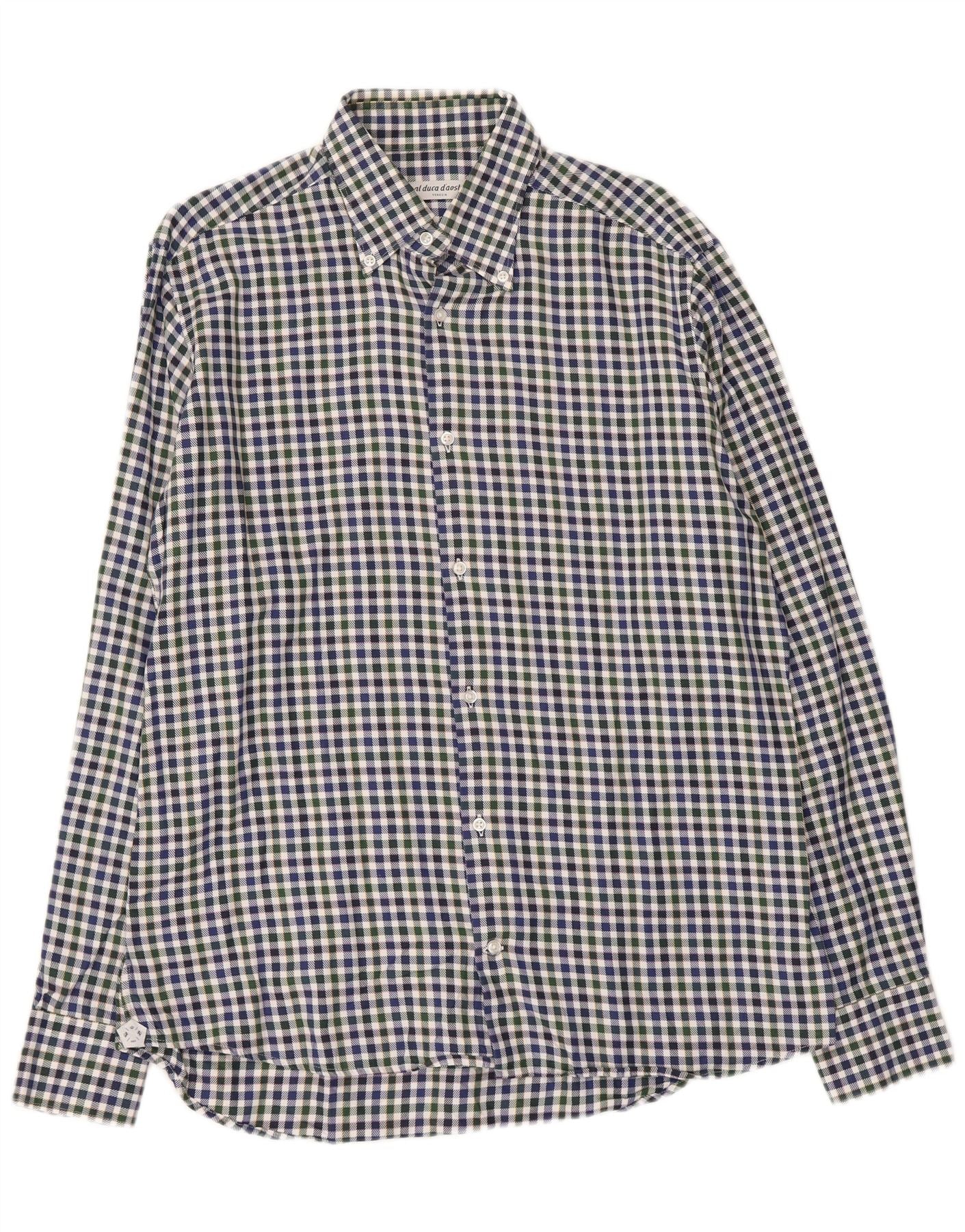 - KI-Beschreibung: Dieses Herrenhemd von Al Duca D'Aosta ist zu 100 Prozent aus gewebter Baumwolle gefertigt und bietet ein frisches und dennoch angenehmes Tragegefühl. Es verfügt über ein klassisches Gingham-Karomuster in einer raffinierten mehrfarbigen Palette aus Marineblau, Grün und Weiß. Der Kragenausschnitt und die durchgehende Knopfleiste vorne sorgen für eine zeitlose, elegante Ästhetik. Die langen Ärmel werden durch hübsche Bündchen abgerundet. Die klassische Passform sorgt für eine bequeme und raffinierte Silhouette für vielseitigen Tragekomfort.