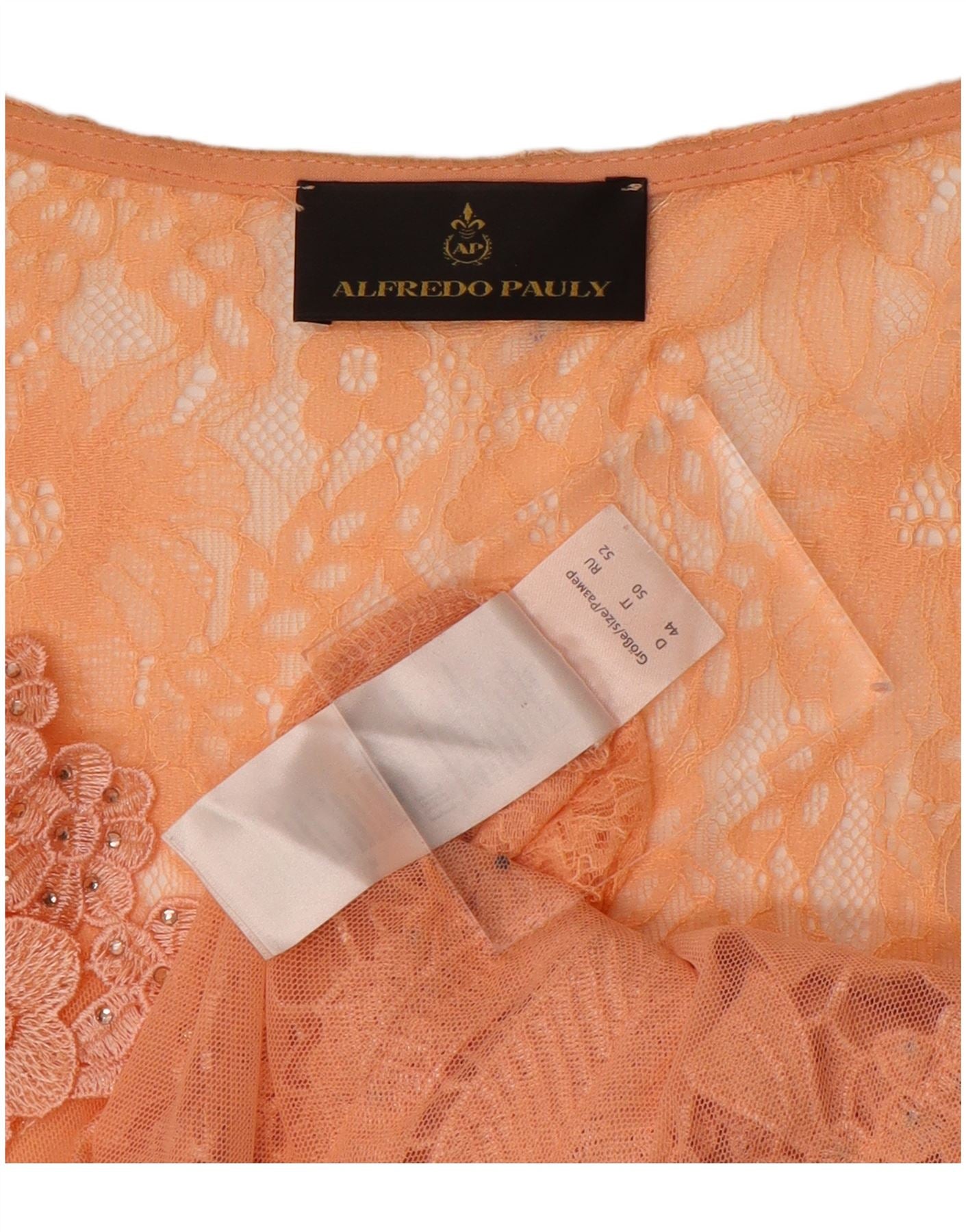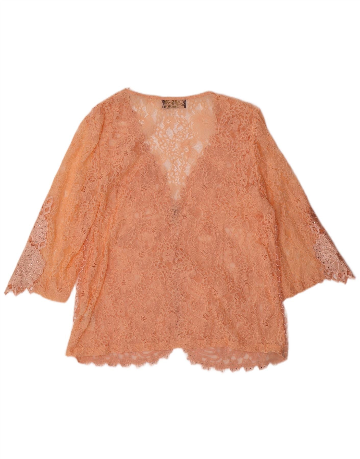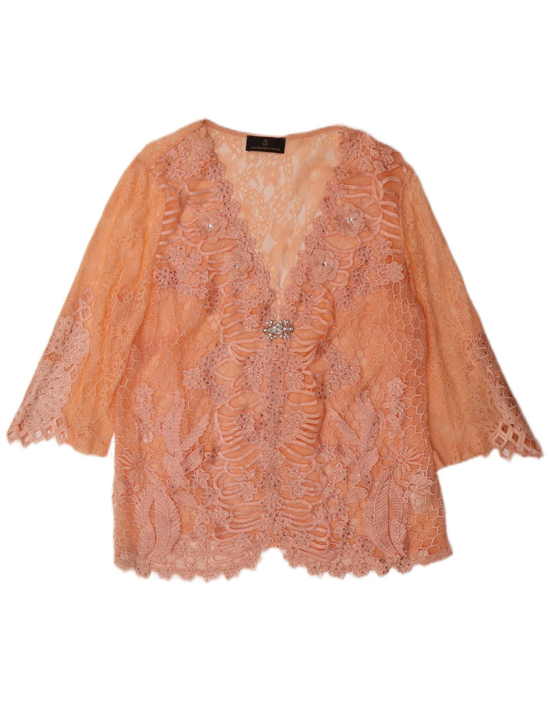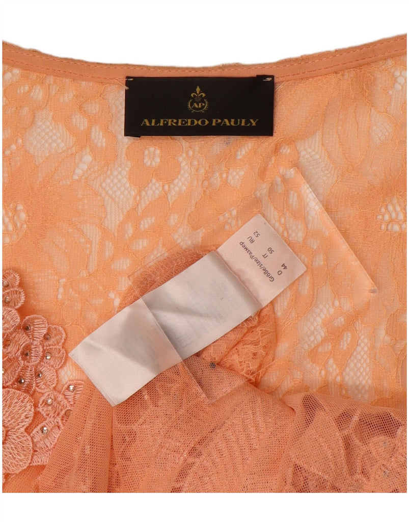 ALFREDO PAULY Womens Lace 3/4 Sleeve Blouse Top IT 50 XL Orange Floral