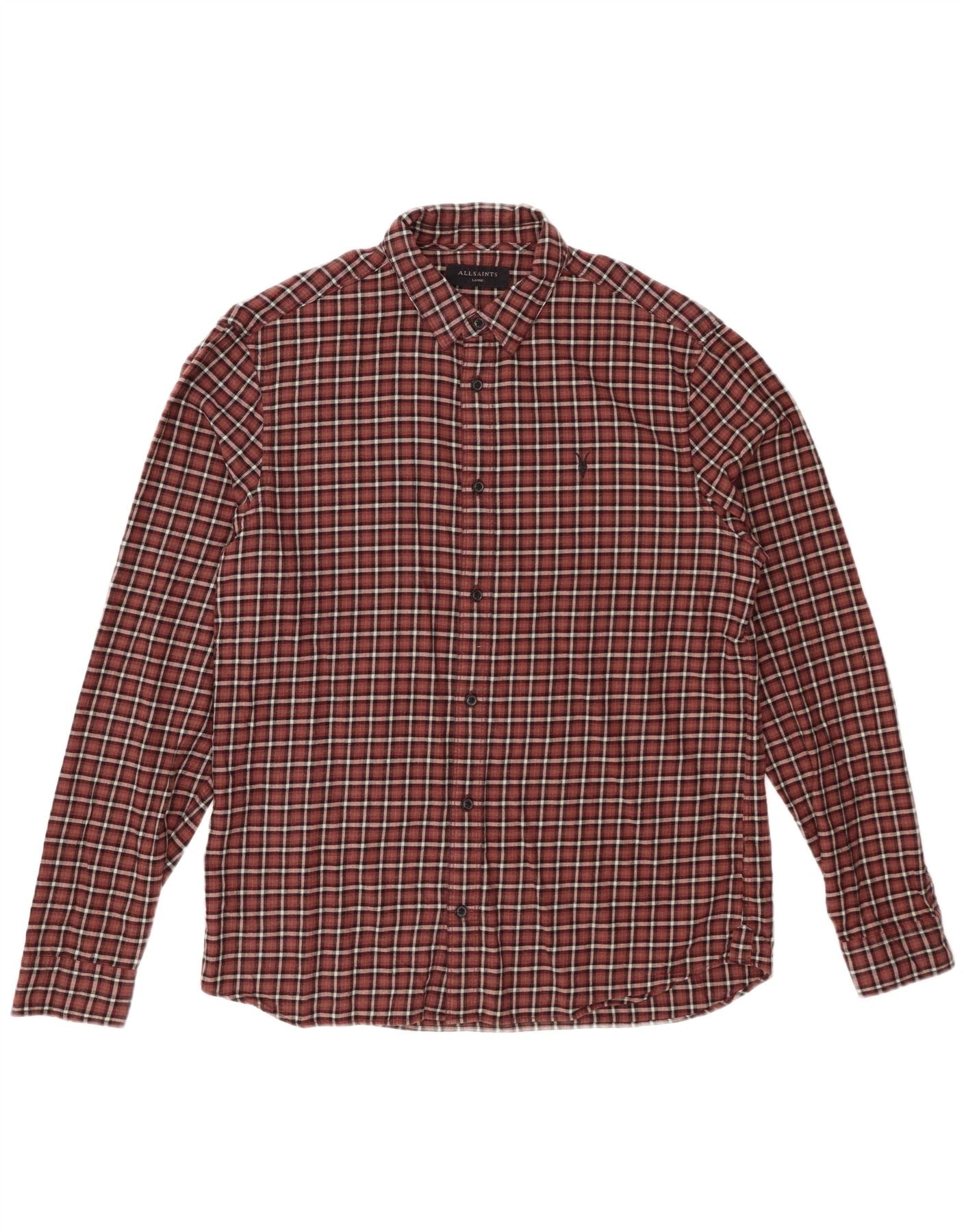 ALL SAINTS Herren-Flanellhemd, groß, Burgunderrot, kariert, Baumwolle