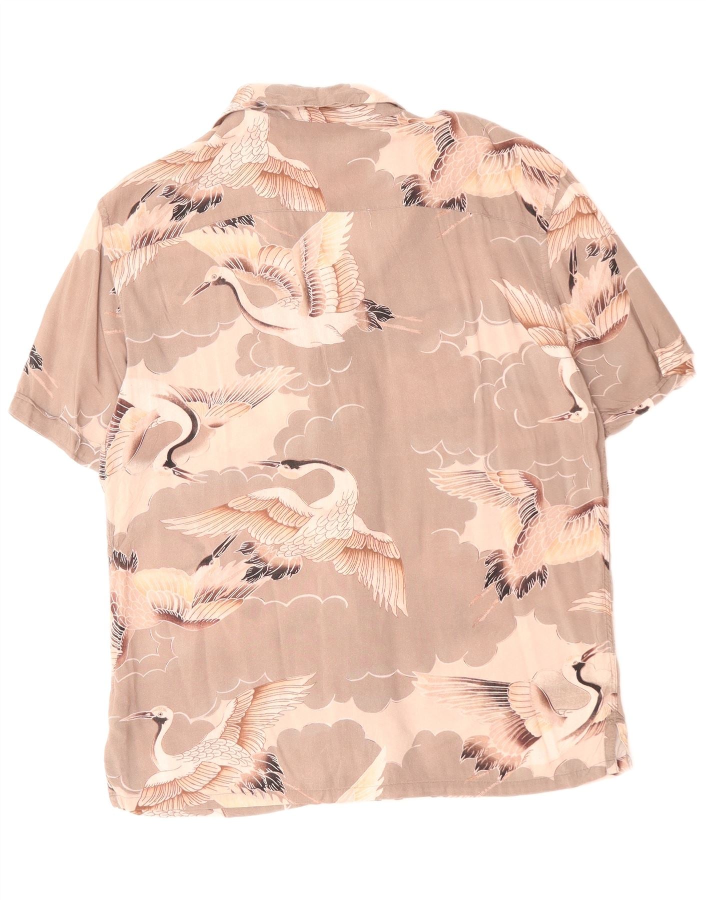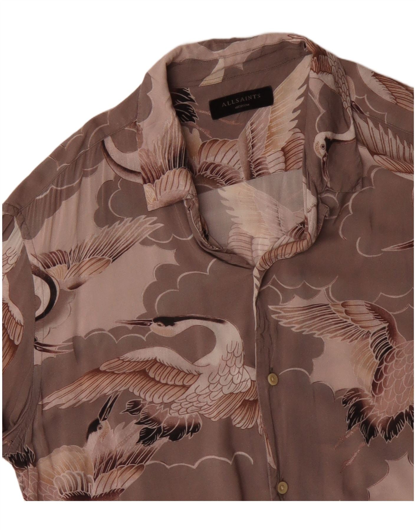 All Saints Herren-Kurzarmhemd Mittelgrauer Viskose-Vogel mit Animal-Print