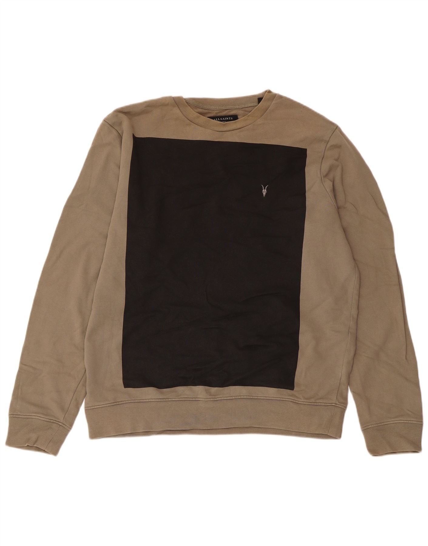 All Saints Herren-Sweatshirt-Pullover, groß, beige, Colourblock-Baumwolle