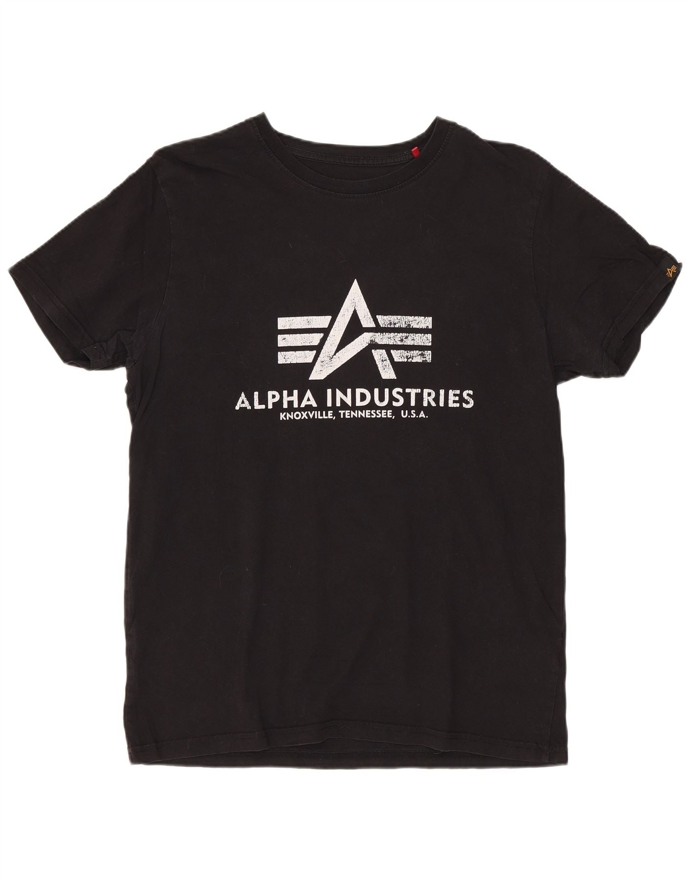 ALPHA INDUSTRIES Damen Grafik-T-Shirt Top UK 10 Small Schwarz Baumwolle