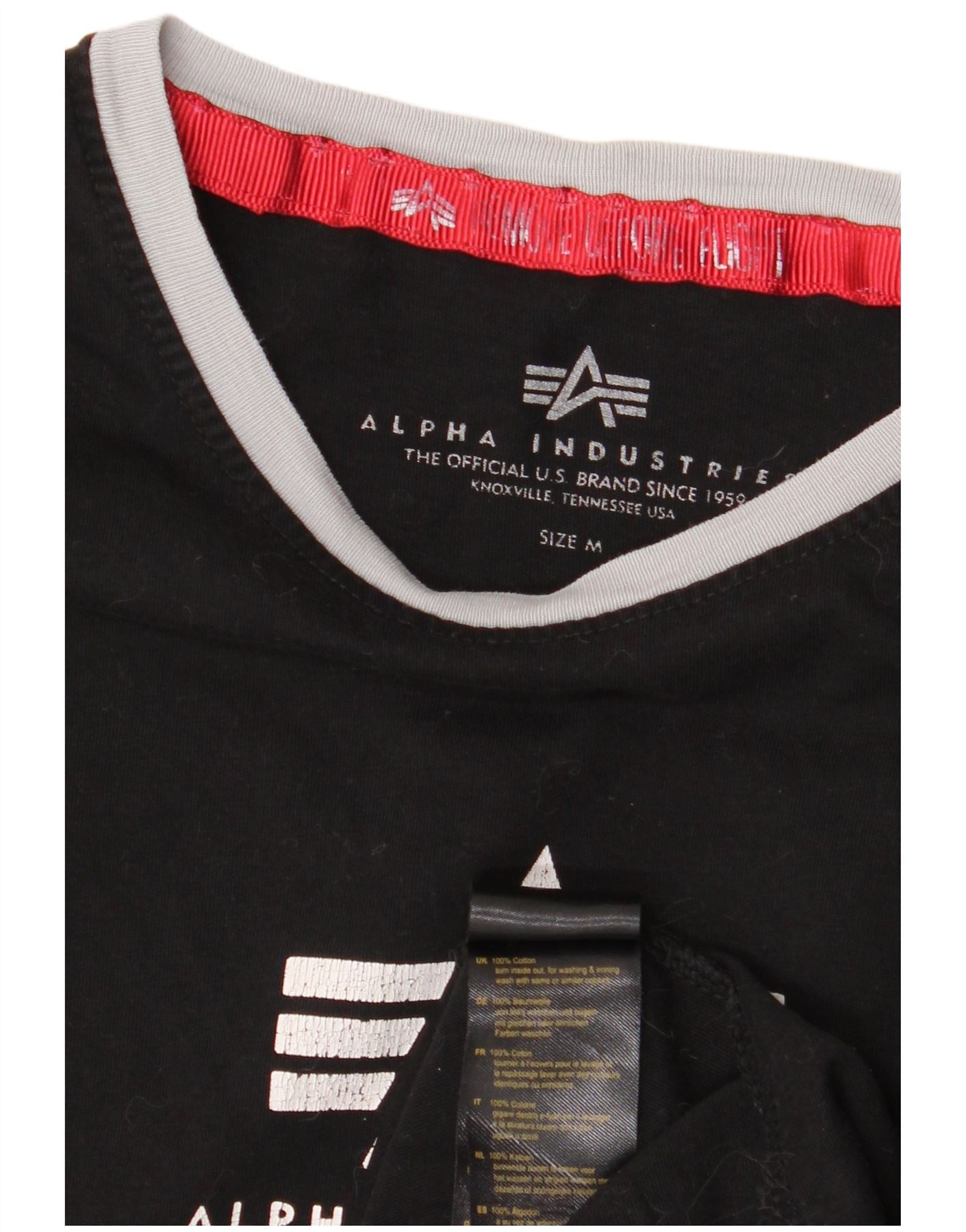 ALPHA INDUSTRIES Damen Grafik-T-Shirt-Oberteil UK 14 Mittelschwarze Baumwolle