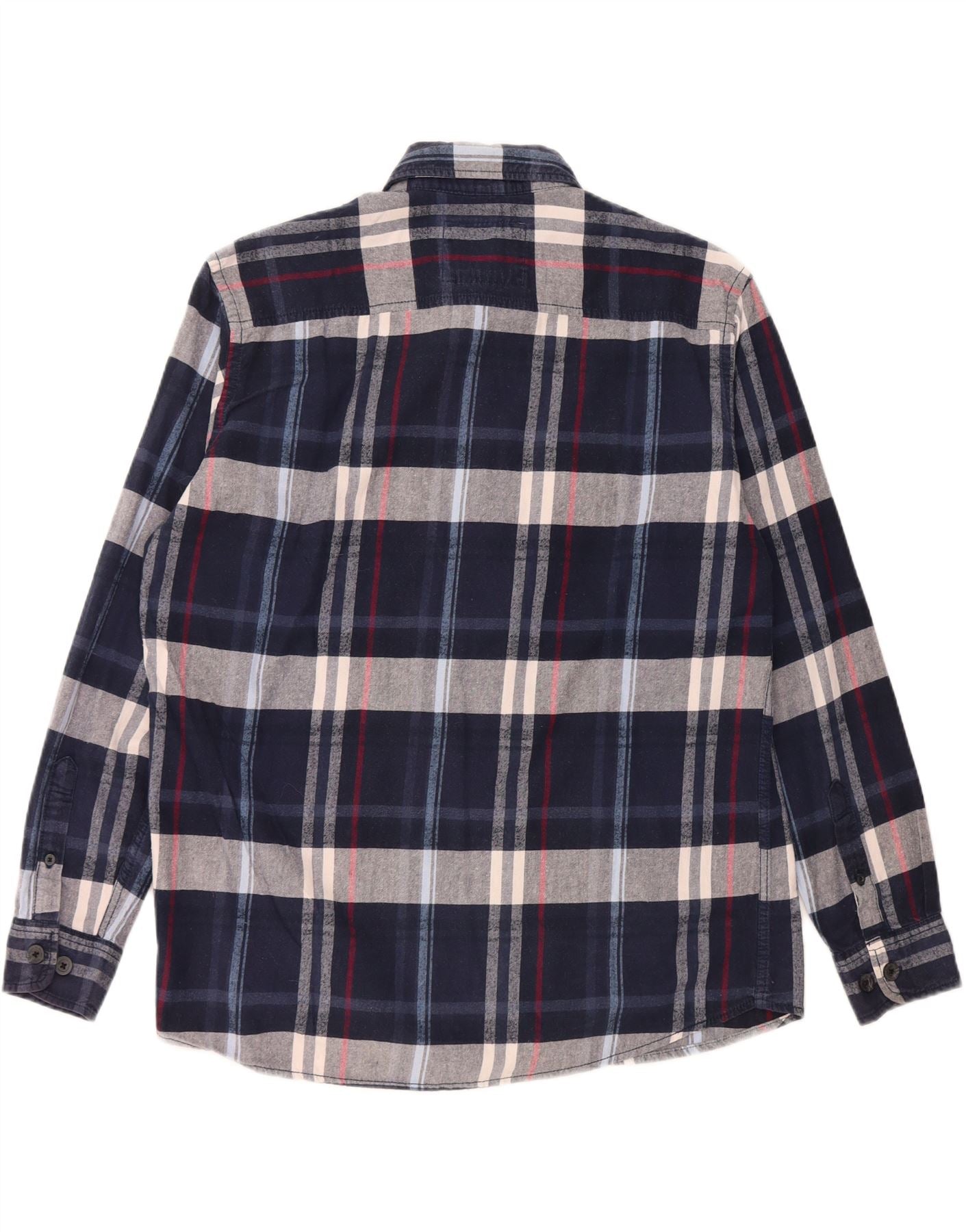ANGELO LITRICO Mens Flannel Shirt Size 43/44 XL Navy Blue Check Cotton