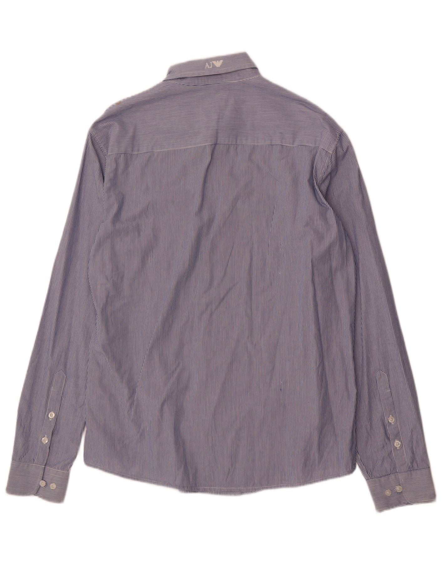 Armani Jeans Herren-Hemd, tailliert, 2XL, blaue Nadelstreifen-Baumwolle