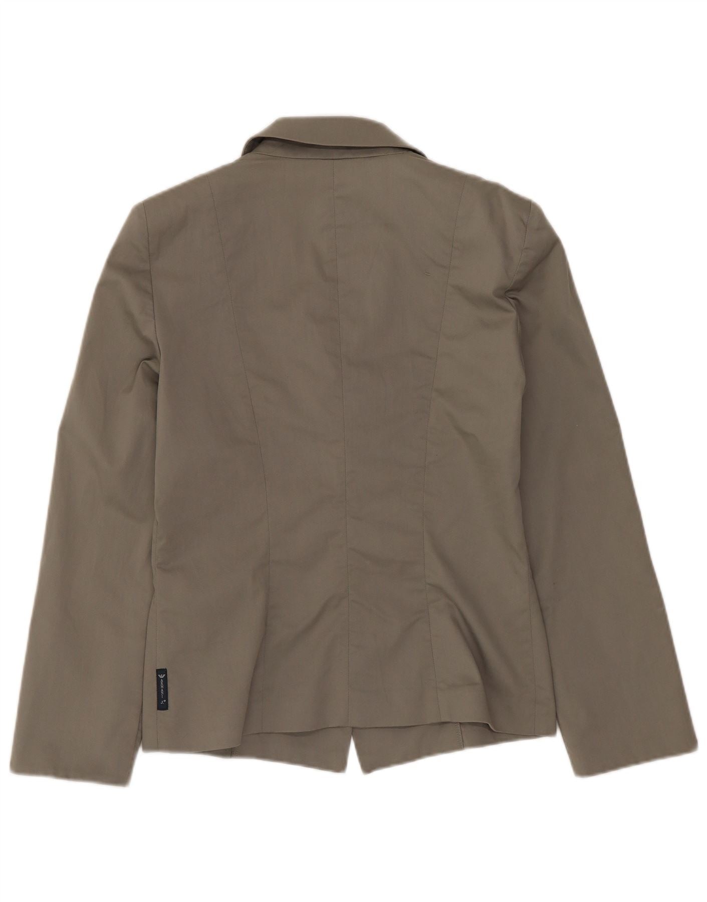 - KI-Beschreibung: Diese Damen-Blazerjacke von Armani Jeans ist aus einem khakifarbenen Mischgewebe gefertigt und bietet ein glattes, raffiniertes Finish. Es verfügt über einen klassischen Kragenausschnitt und lange Ärmel. Die reguläre Passform sorgt für eine bequeme und dennoch figurbetonte Silhouette. Ein Zwei-Knopf-Verschluss vorne und dezente Taschen sorgen für funktionale Eleganz. Dieses Stück verkörpert einen zeitlosen, klassischen Stil.