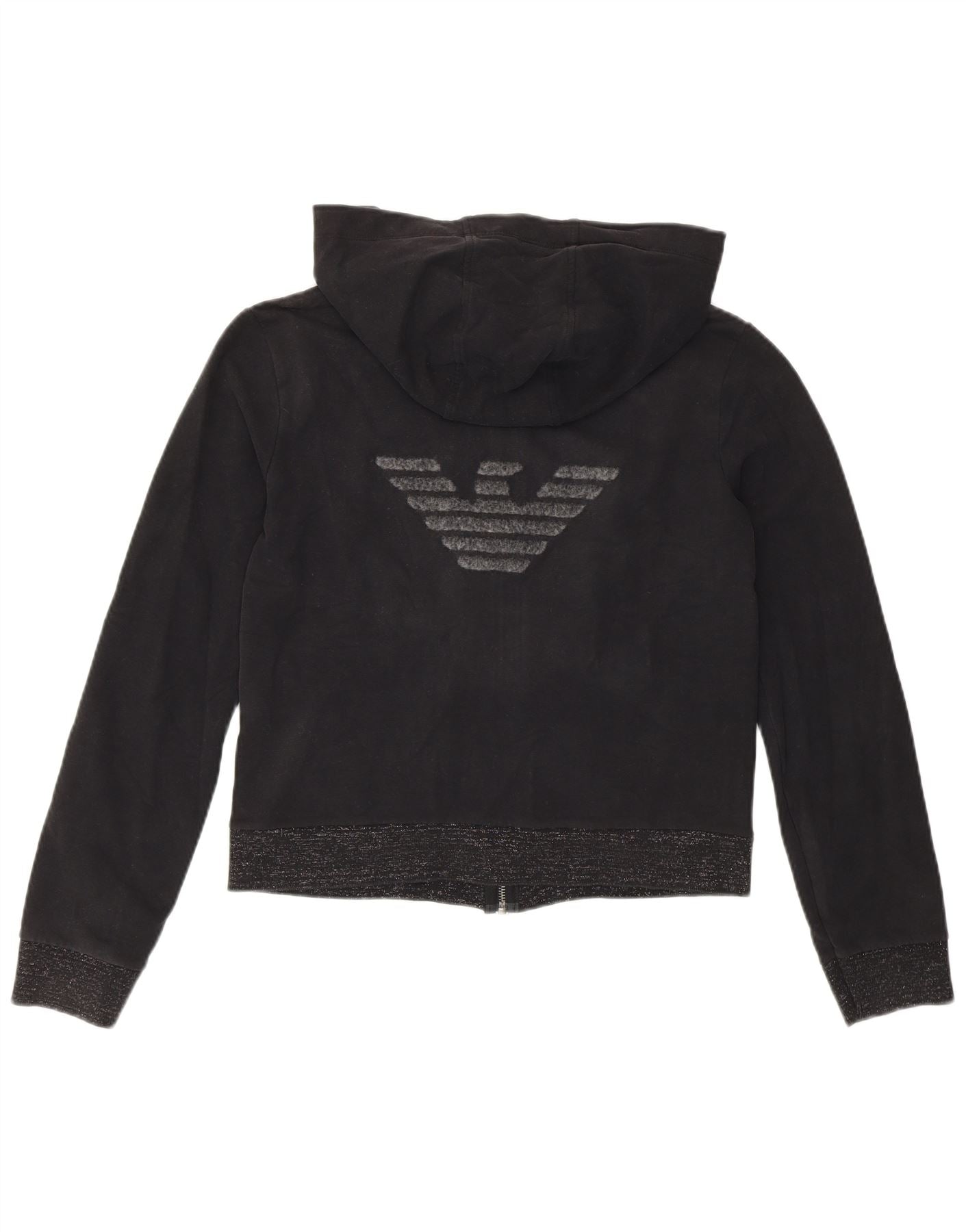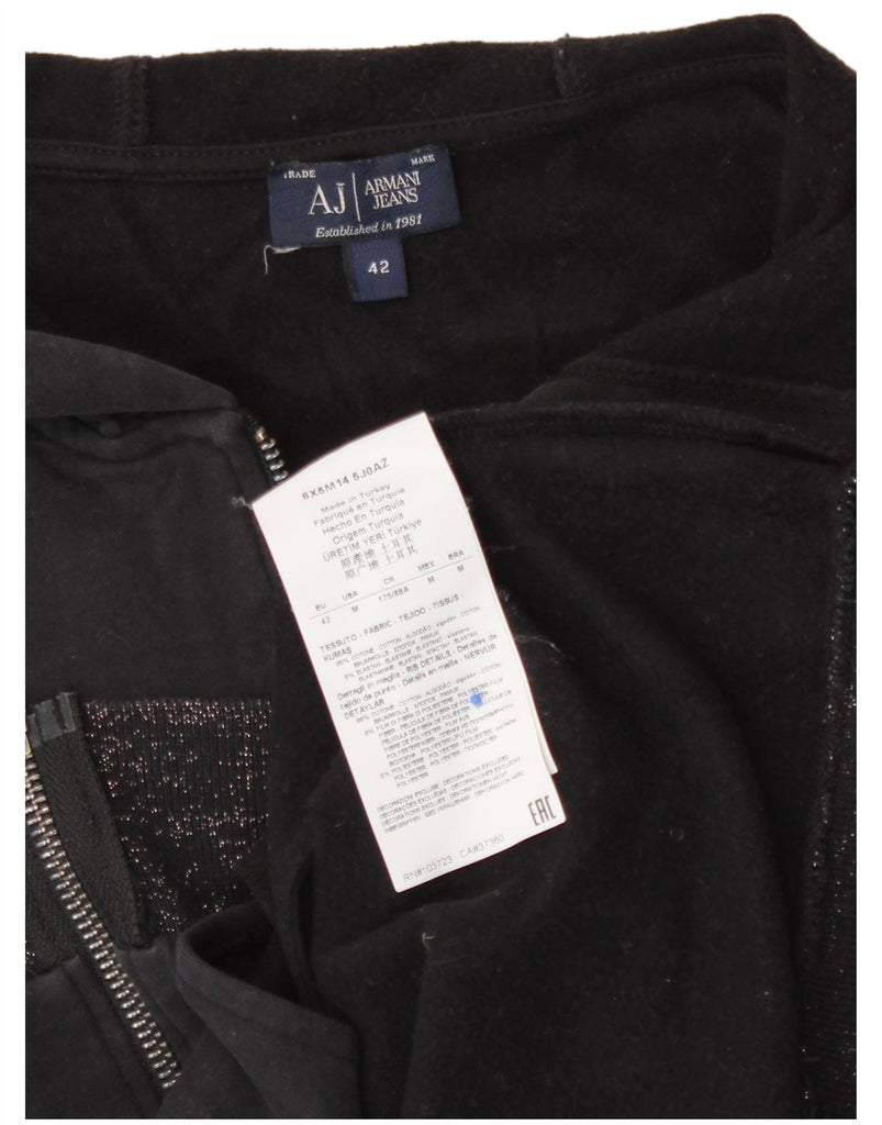 ARMANI JEANS Womens Crop Graphic Zip Hoodie Sweater EU 42 Large Black