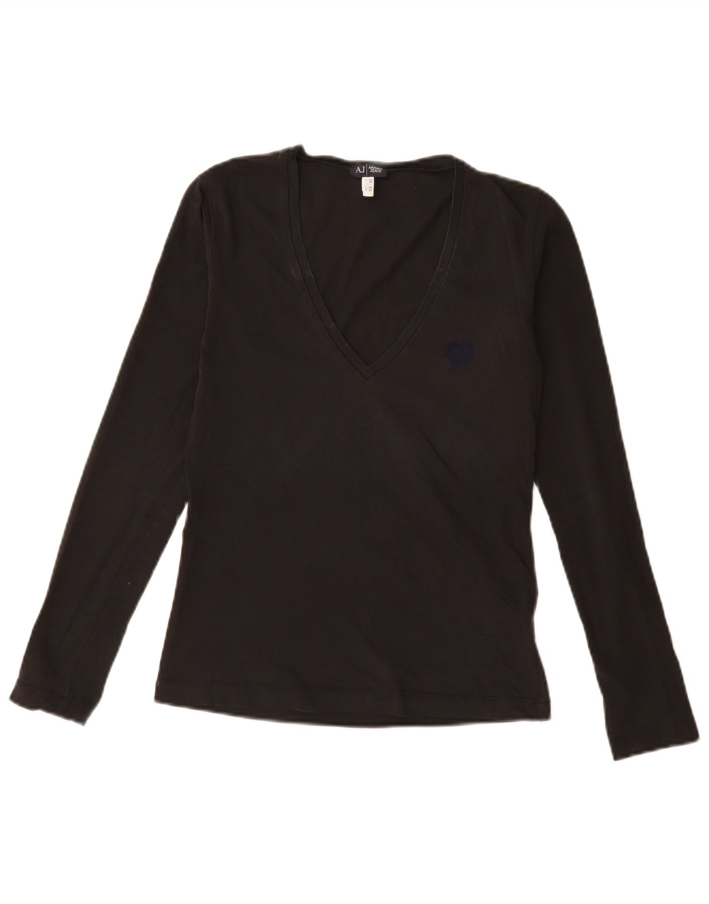 Armani Jeans Damen Top Langarm EU 38 Mittelschwarze Baumwolle