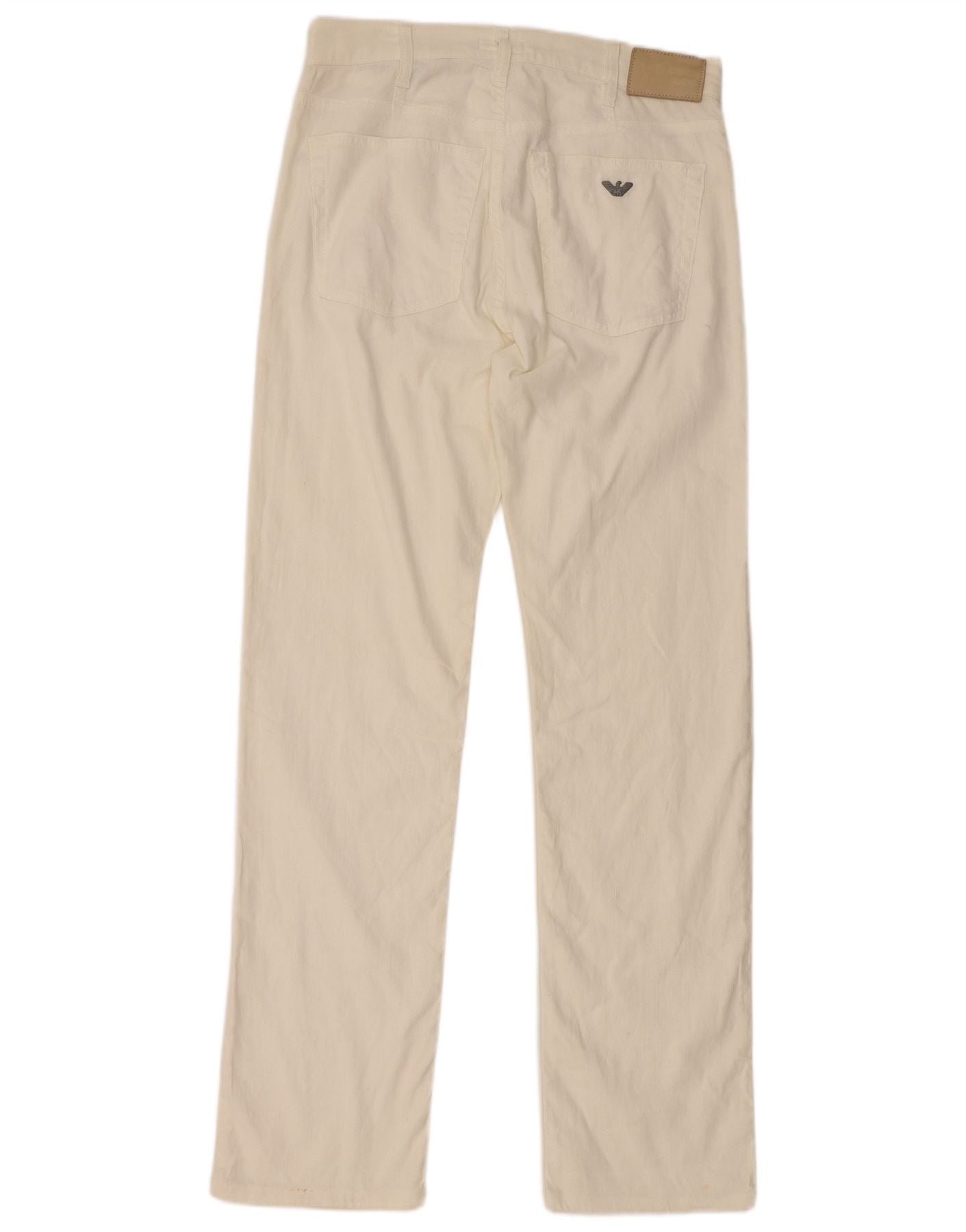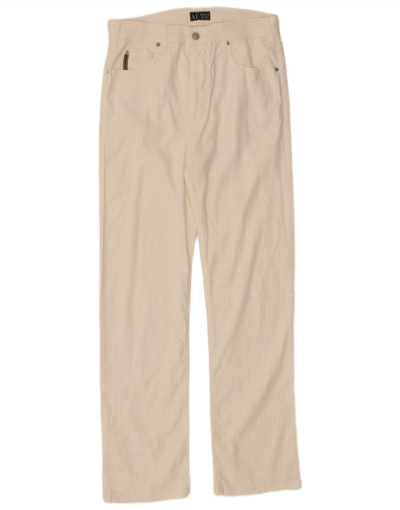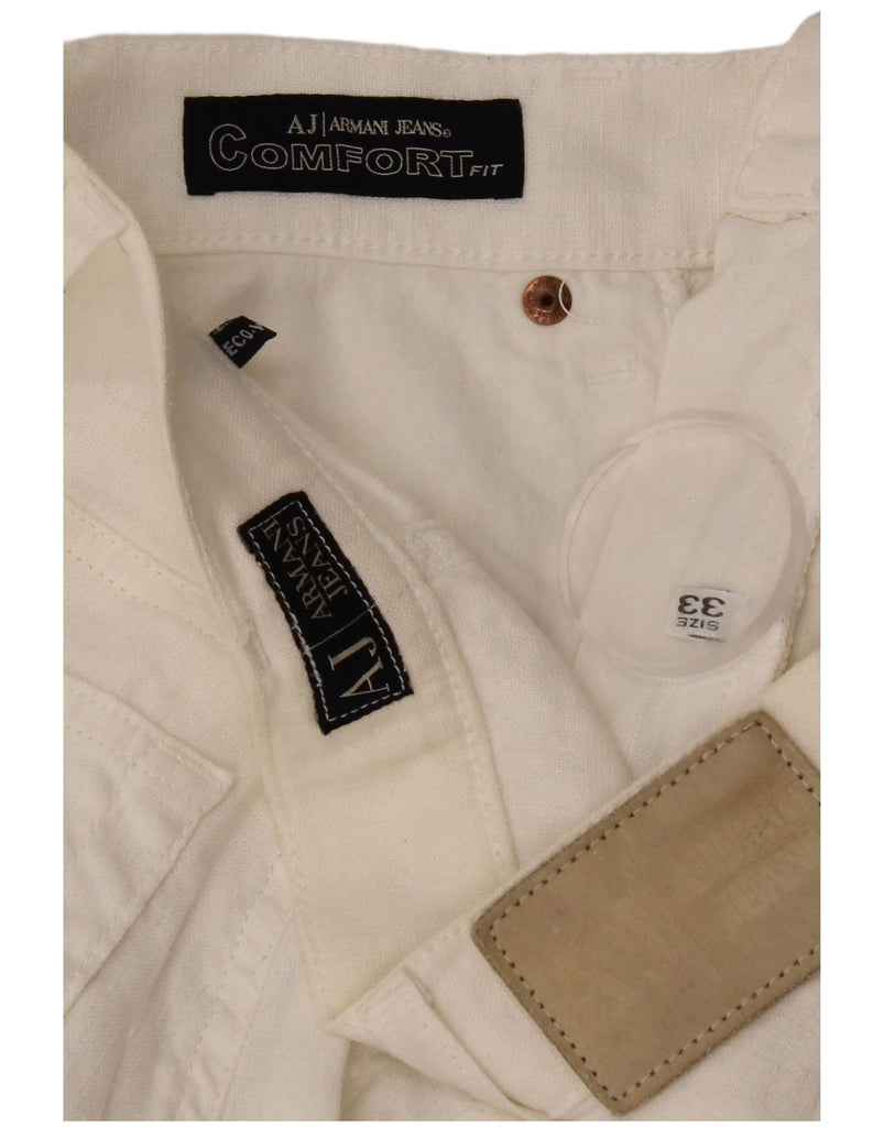 ARMANI Mens Comfort Fit Straight Casual Trousers W33 L32 White Cotton
