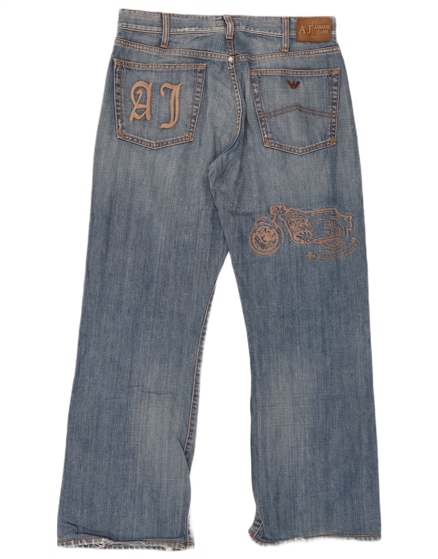 ARMANI Herren Graphic Straight Jeans W34 L30 Blaue Baumwolle