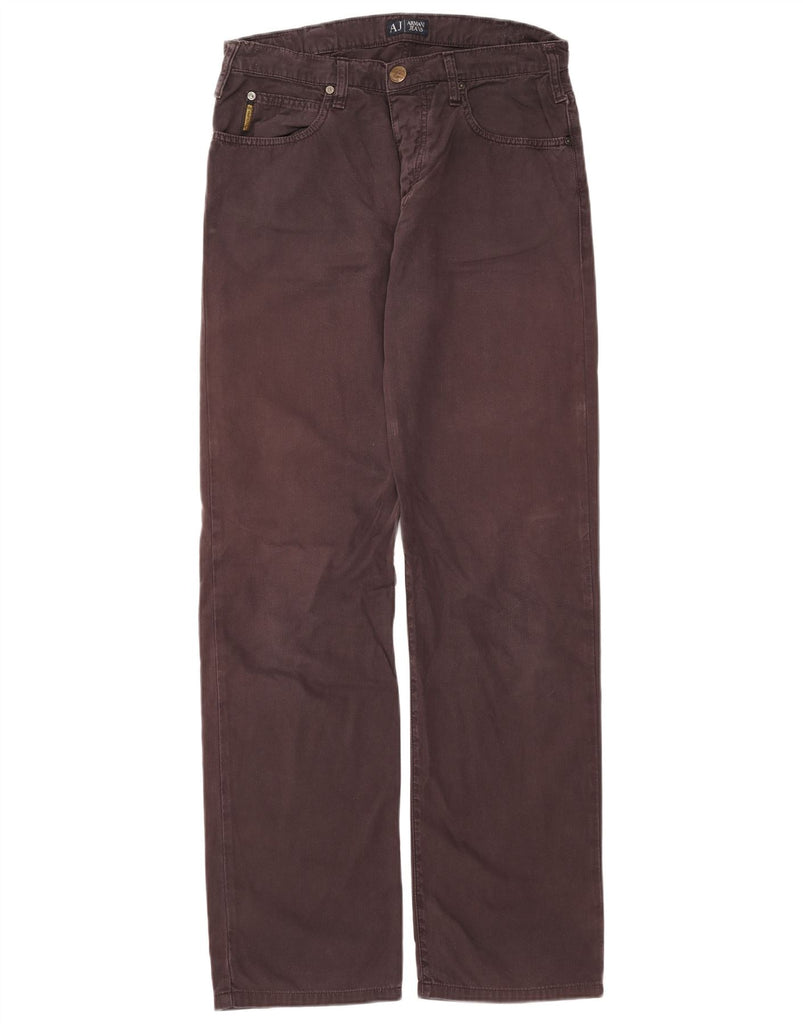 ARMANI Mens Straight Casual Trousers W33 L34 Brown Chevron Cotton