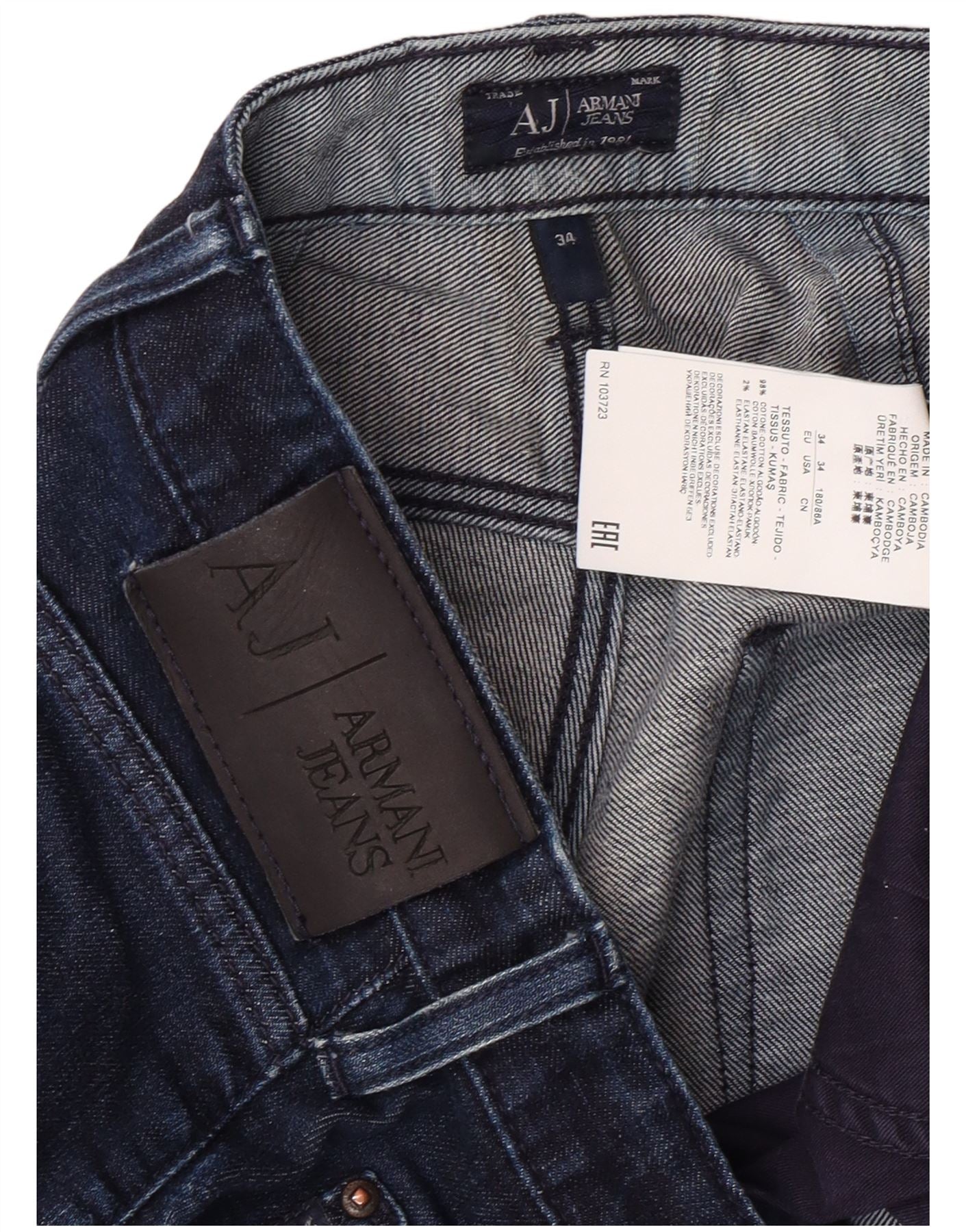 Home > Vintage-Armani-Kleidung > Herren > Jeans > ARMANI Herren Straight Jeans W34 L29 Marineblaue Baumwolle