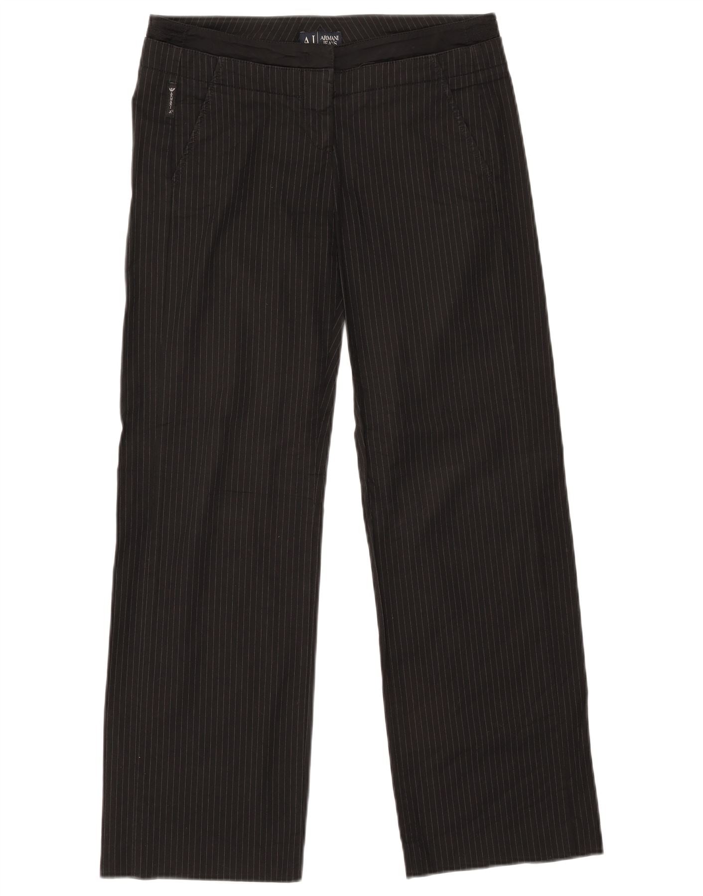 Home > Vintage-Armani-Kleidung > Damen > Vintage Armani-Hose für Damen > ARMANI Damen gerade Chinohose W32 L30 schwarze Nadelstreifen-Baumwolle
