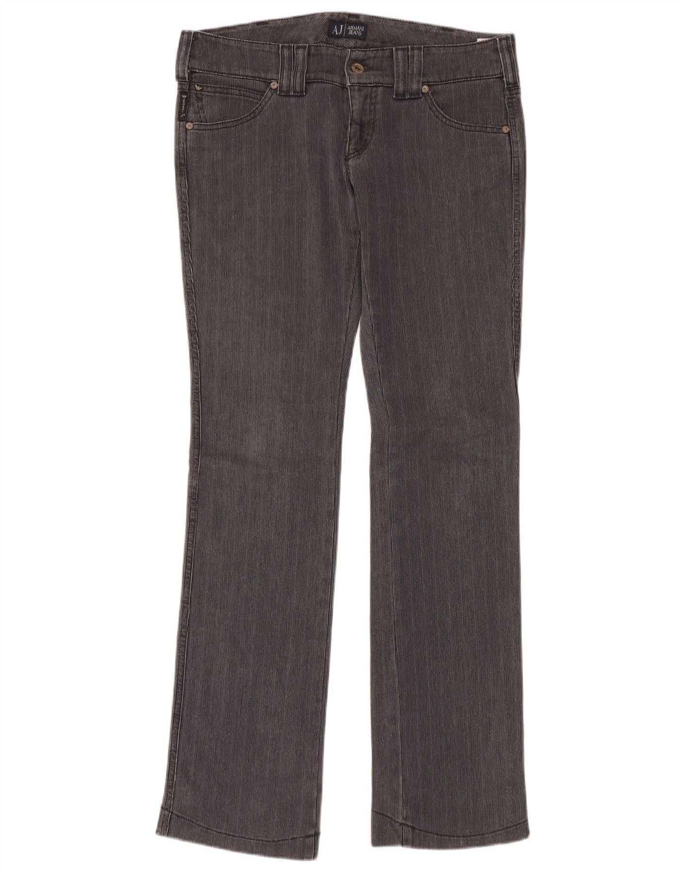 Home > Vintage-Armani-Kleidung > Damen > Vintage Armani-Hose für Damen > ARMANI Damen-Freizeithose mit gerader, niedriger Taille, W34, L34, grauer Nadelstreifen