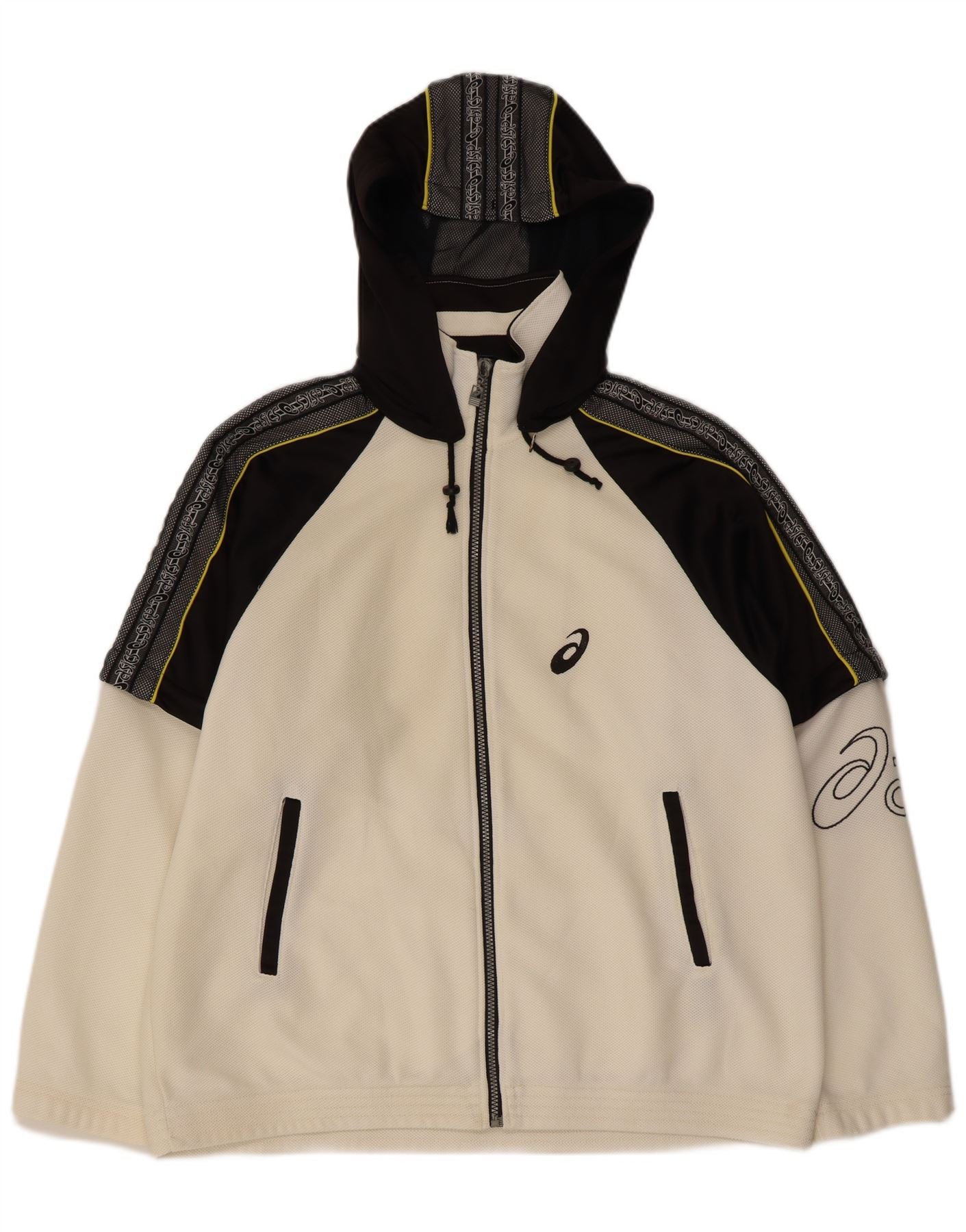 Home > Vintage Asics-Kleidung > Vintage-Asics-Bekleidung für Herren > Trainingsoberteile > ASICS Herren-Trainingsanzug mit grafischer Kapuze, Mittelweiß, Farbblock