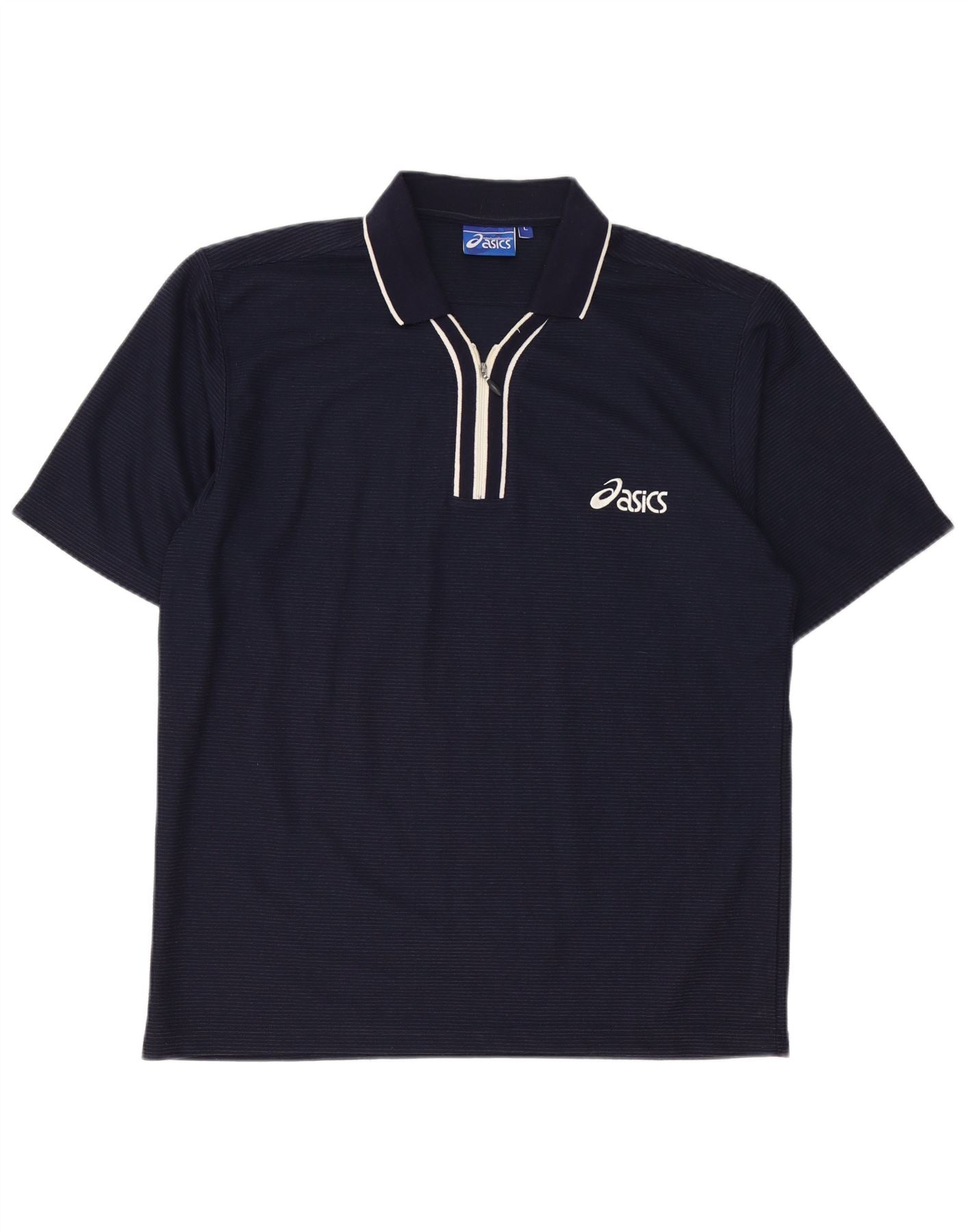 ASICS Herren-Poloshirt, groß, marineblau, Nadelstreifen-Baumwolle