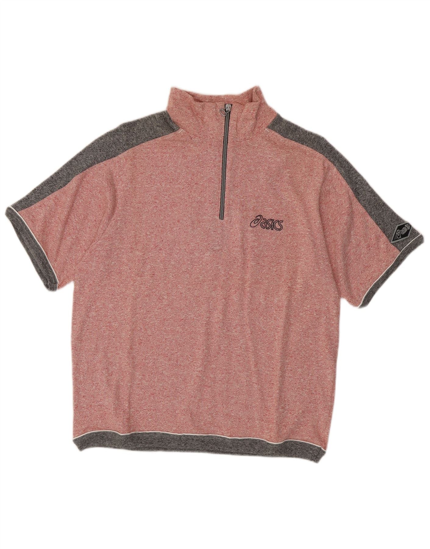 Asics Herren Kurzarm-Pullover mit Reißverschluss am Hals Mittelrosa Farbblock