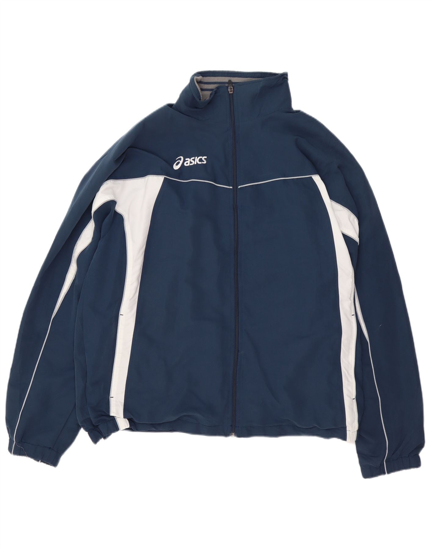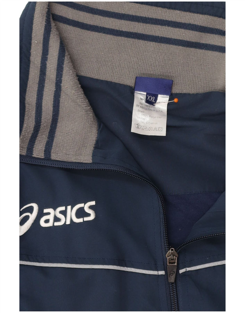 ASICS Mens Tracksuit Top Jacket 2XL Navy Blue Colourblock Polyester