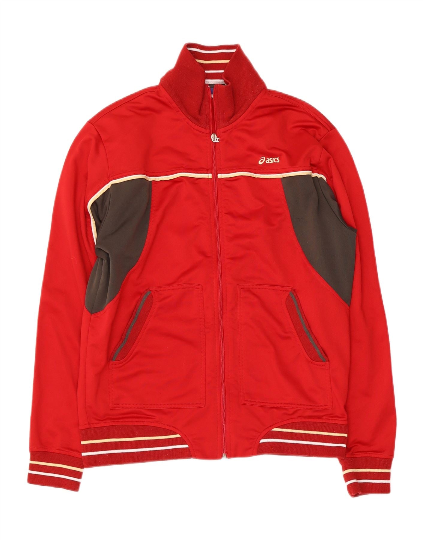 Home > Vintage Asics-Kleidung > Vintage-Asics-Bekleidung für Herren > Trainingsoberteile > ASICS Herren-Trainingsanzug-Oberjacke, Mittelrotes Farbblock-Polyester