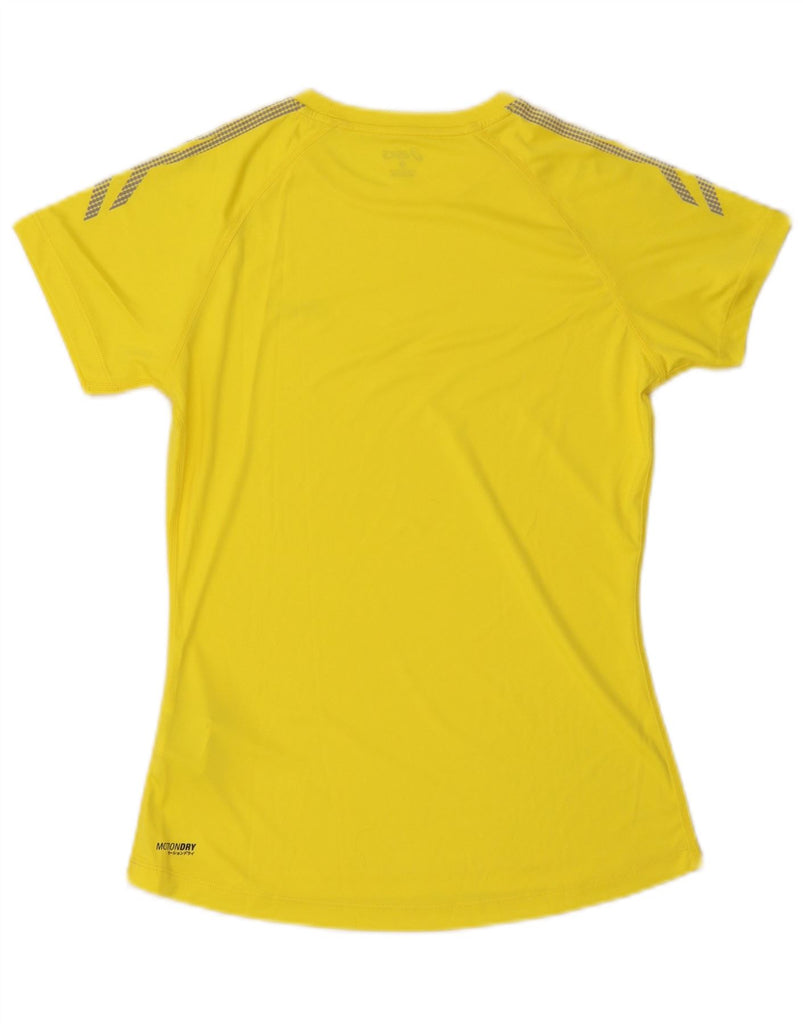 ASICS Womens Motion Dry T-Shirt Top UK 10 Small Yellow Spotted Polyester