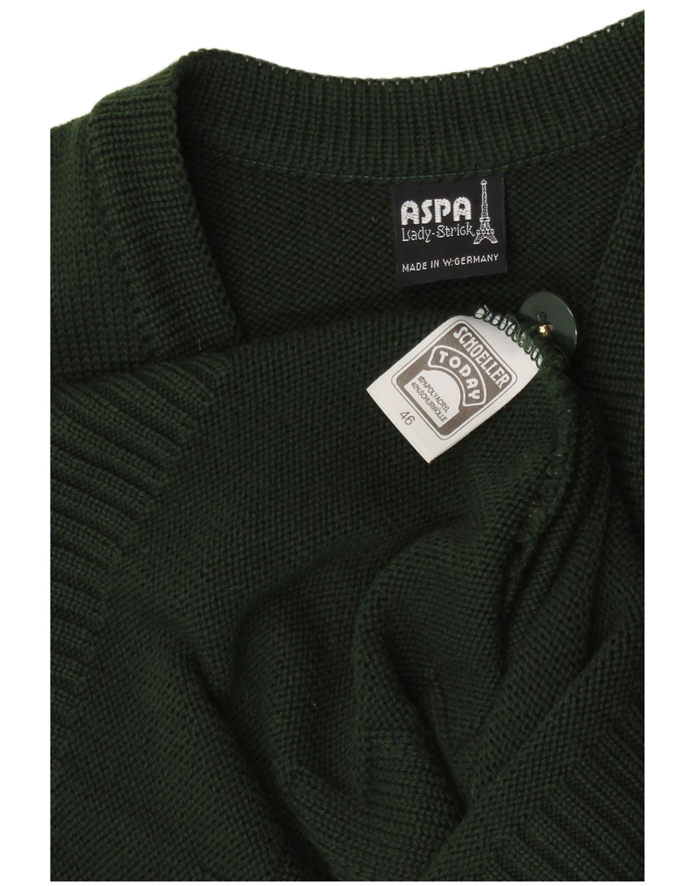 Aspa Damen-Cardigan mit Grafik, ärmellos, EU 46, XL, grünes Polyacryl