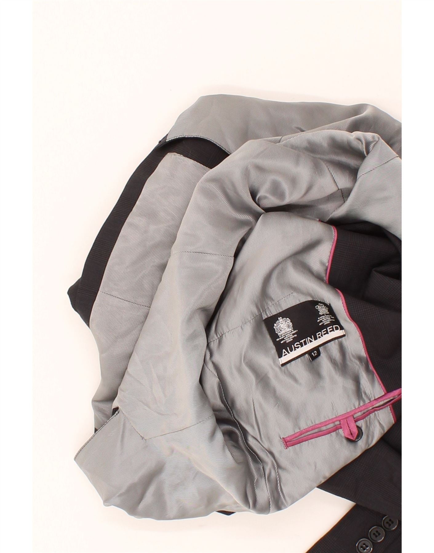 AUSTIN REED Womens 1 Button Blazer Jacket UK 12 Medium Grey Wool