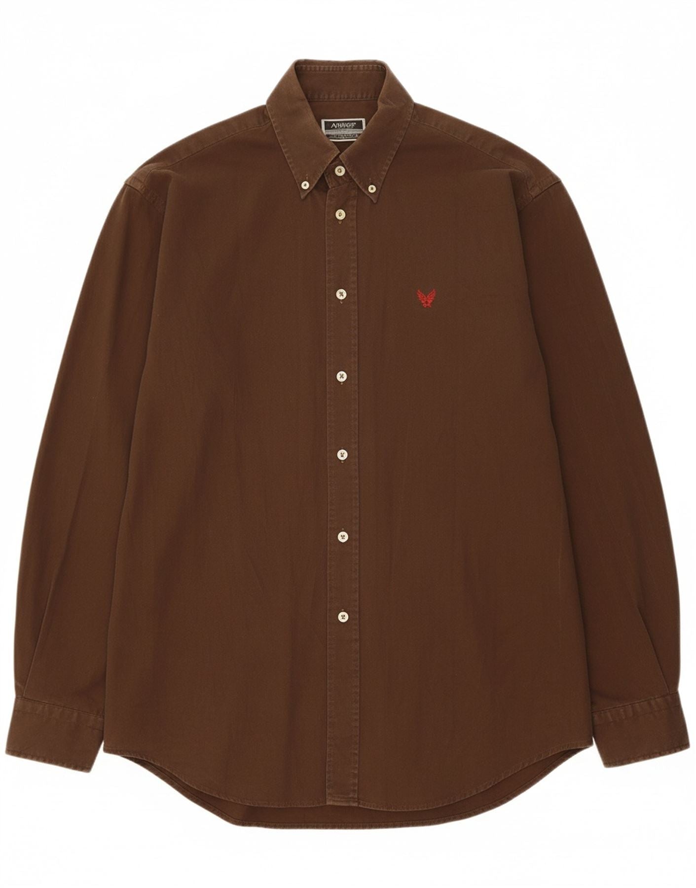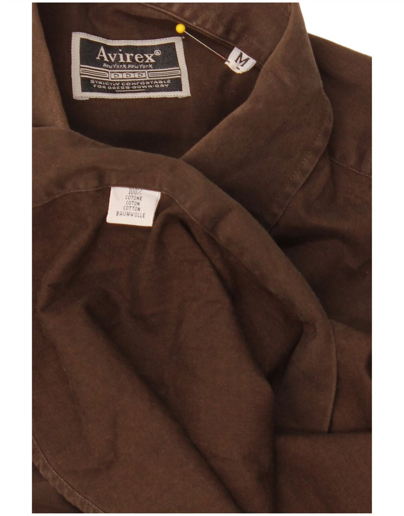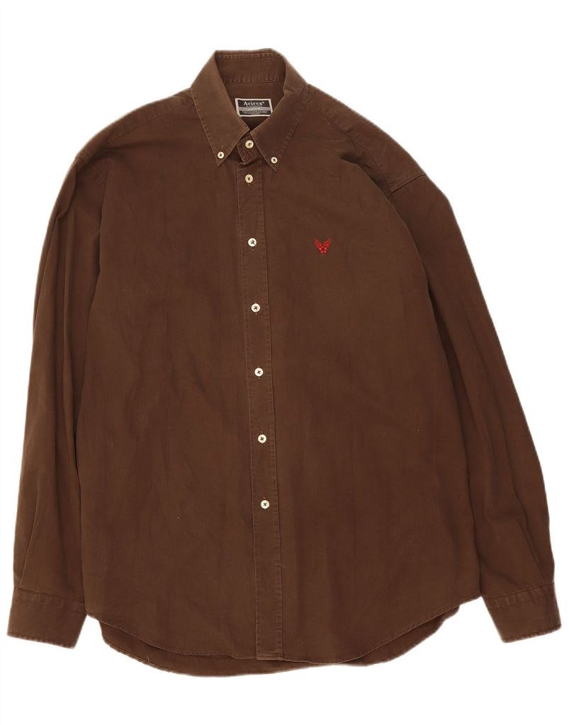 - AI Description: This Avirex mens shirt is crafted from 100 percent woven cotton, offering a comfortable and durable feel. Its classic brown hue provides a versatile foundation. The collared neckline and full button closure present a timeless, smart aesthetic. Long sleeves complete the traditional silhouette. A subtle logo detail adds a signature touch. This regular fit shirt ensures everyday comfort and classic style.