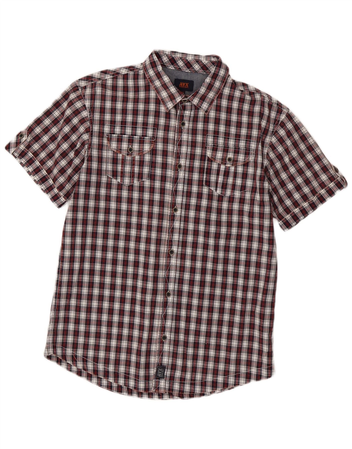 AVIREX Herren-Kurzarmhemd aus mittelroter Karo-Baumwolle