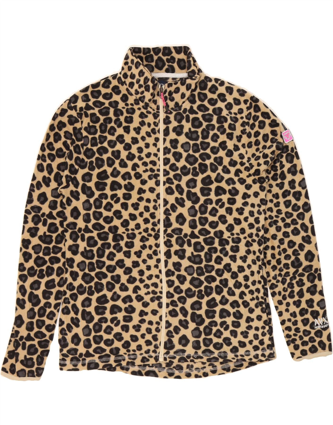 AVIREX Womens Zip Fleece Jacket UK 20 2XL Beige Animal Print Polyester