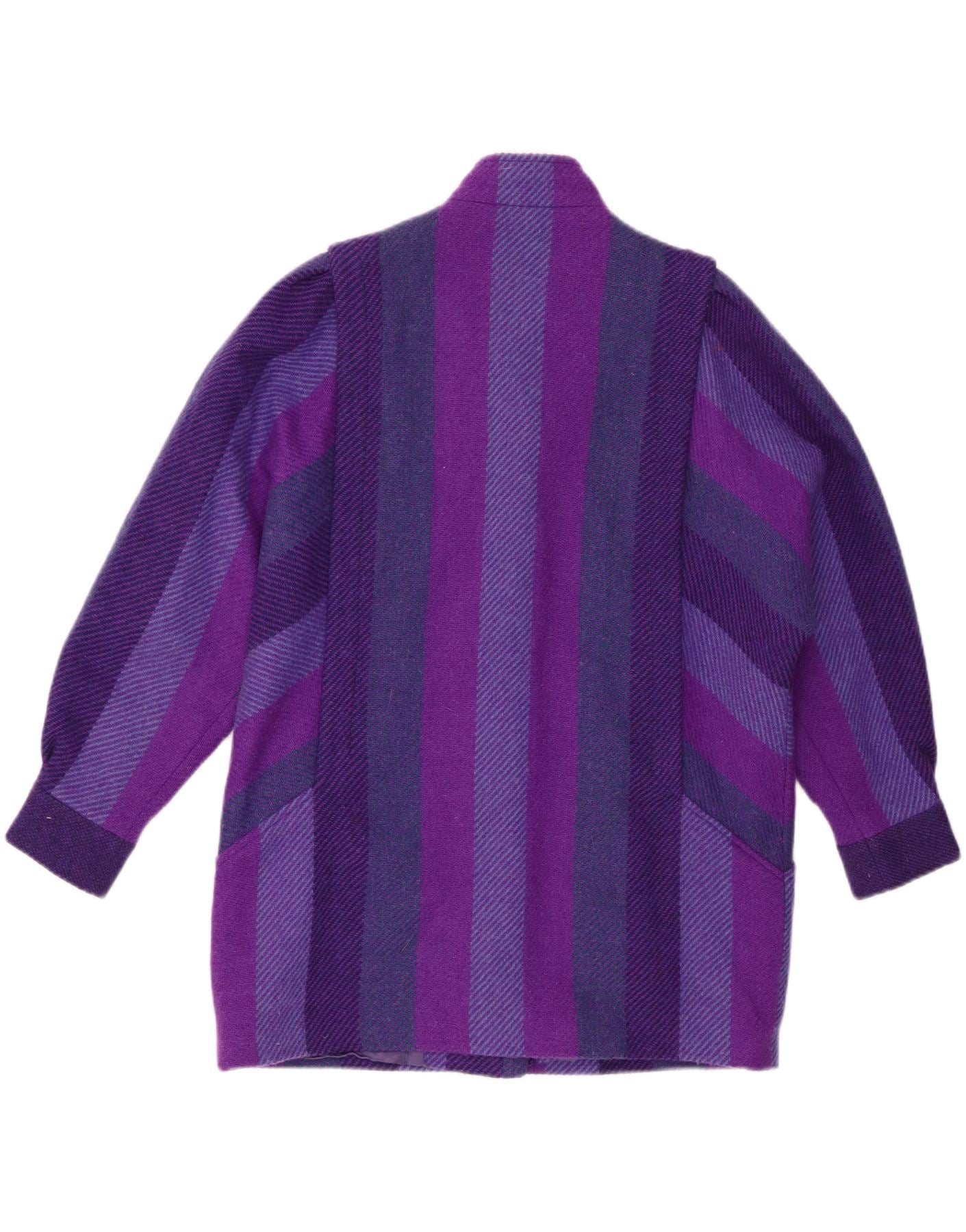 - AI Description: This Avoca women’s jacket is crafted from luxurious pure new wool in a rich multicoloured stripe weave. It features a collared neckline and long batwing sleeves, offering a distinctive, relaxed silhouette. The button closure adds a classic finish, complementing the bold striped pattern. With a comfortable relaxed fit, this piece includes practical pockets and a full viscose lining, ensuring both style and warmth.