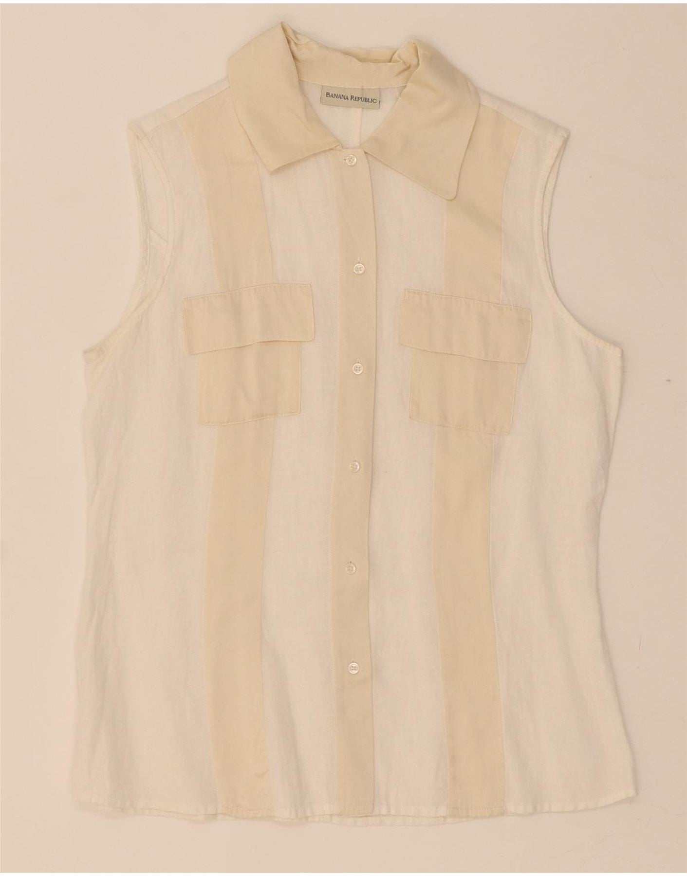 BANANA REPUBLIC Womens Sleeveless Shirt Blouse UK 12 Medium Beige Striped