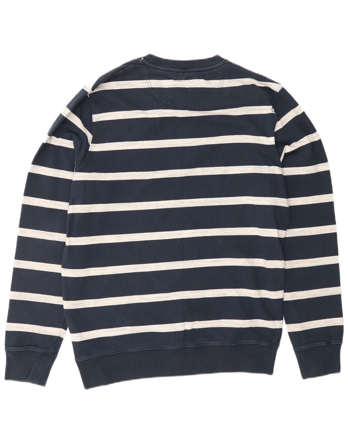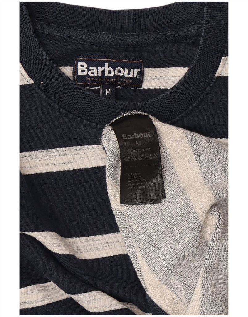 BARBOUR Mens Graphic Sweatshirt Jumper Medium Navy Blue Striped Cotton