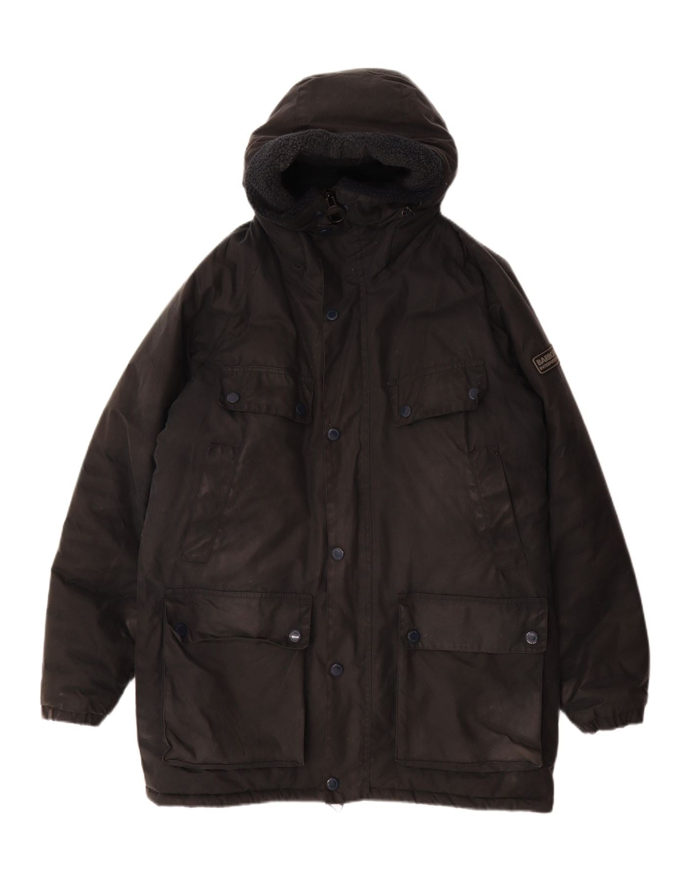 BARBOUR Mens Hooded Waxed Cotton Jacket UK 40 Large Black Cotton