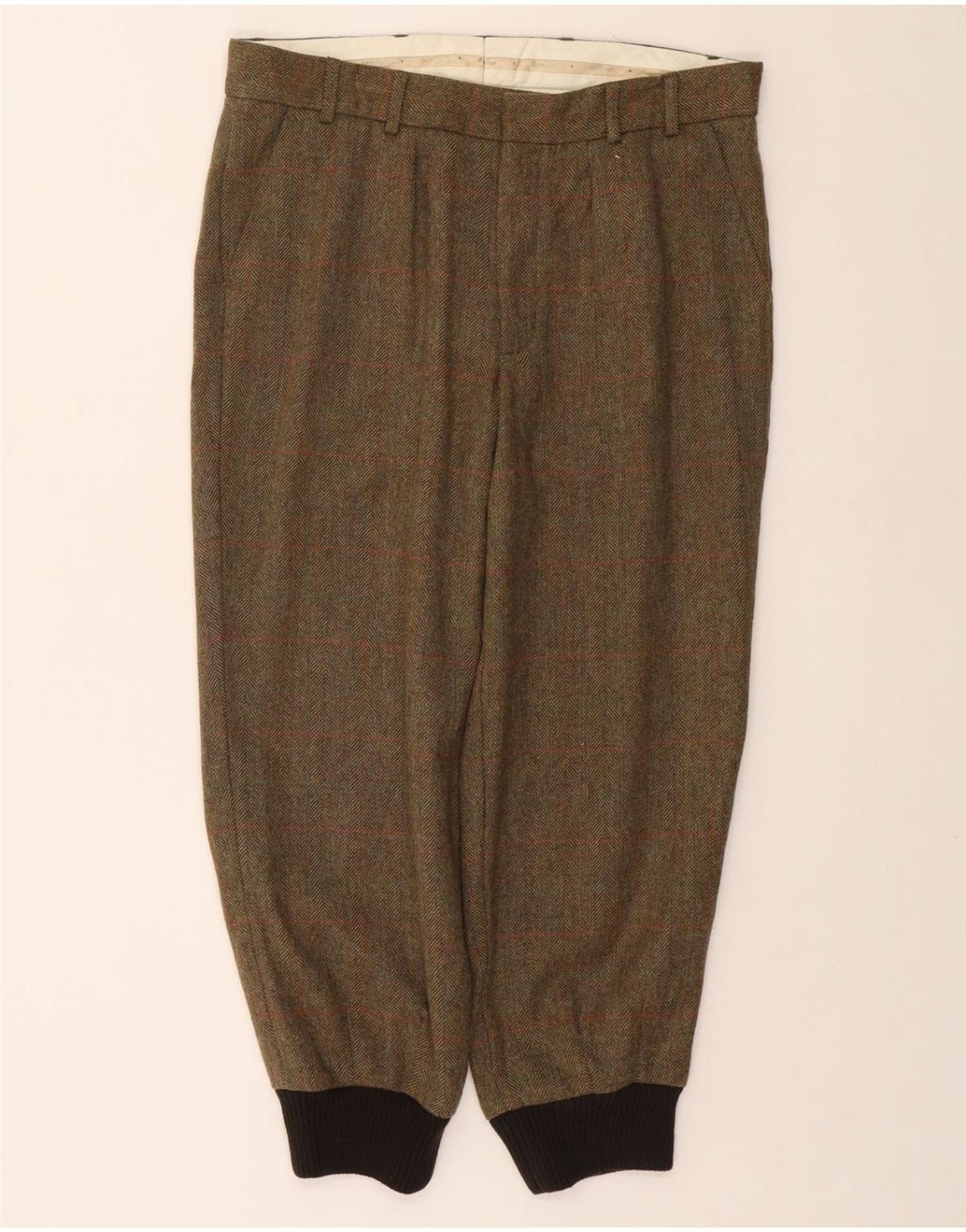 BARBOUR Mens Joggers Cropped Trousers W36 L27 Khaki Check Wool
