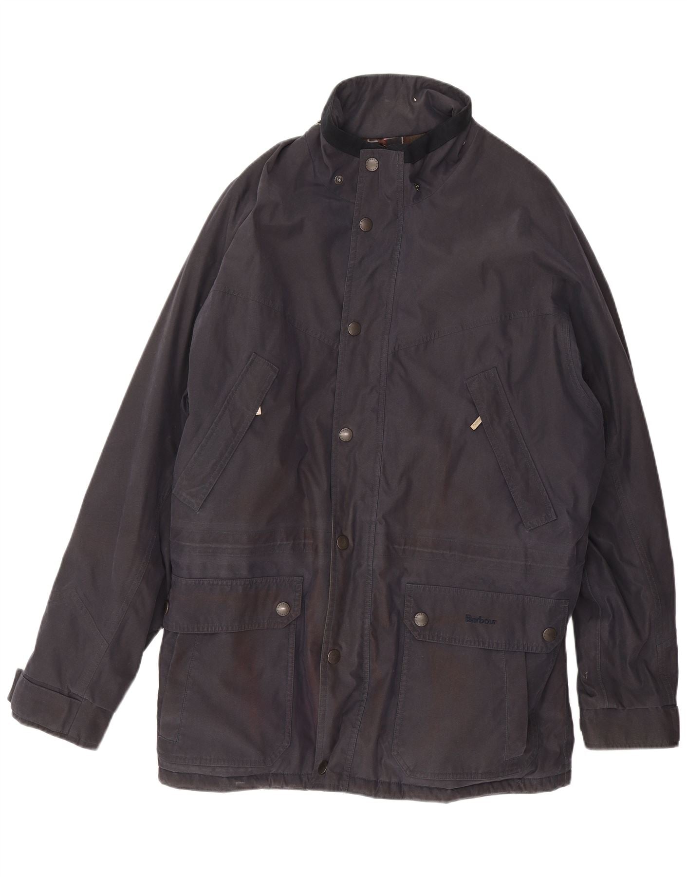 Home > Vintage Barbour-Kleidung > Herren > Jacken > Barbour Herrenjacke aus gewachster Baumwolle, UK 42 XL, Marineblau