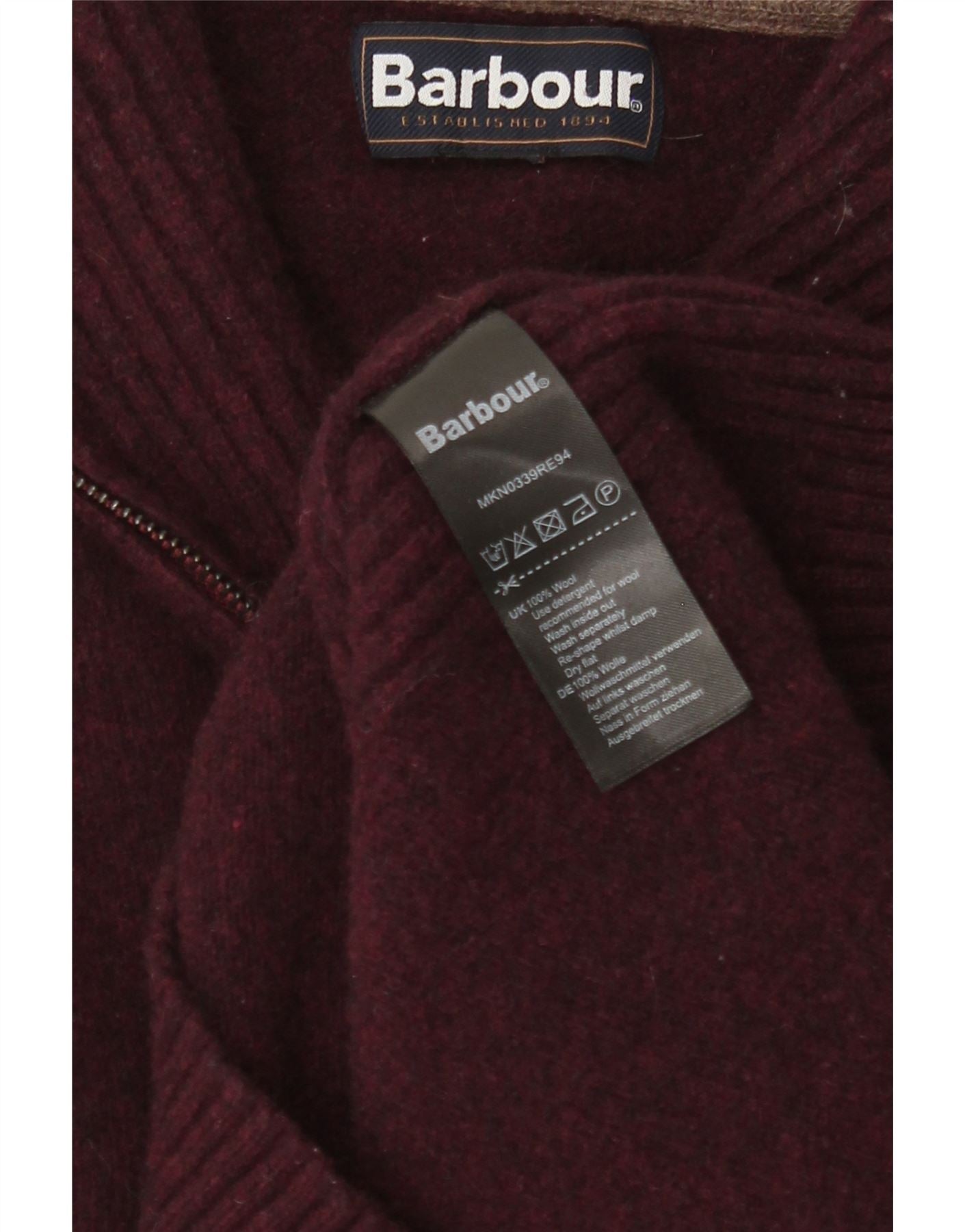 - AI Description: This Barbour mens Zip Neck Jumper Sweater is crafted from 100 percent wool knit for warmth and comfort. Its rich burgundy colour adds a sophisticated touch. The mock neck and quarter zip closure offer versatile styling options. Long sleeves and a regular fit ensure a classic, comfortable silhouette. A subtle logo detail completes this timeless design.