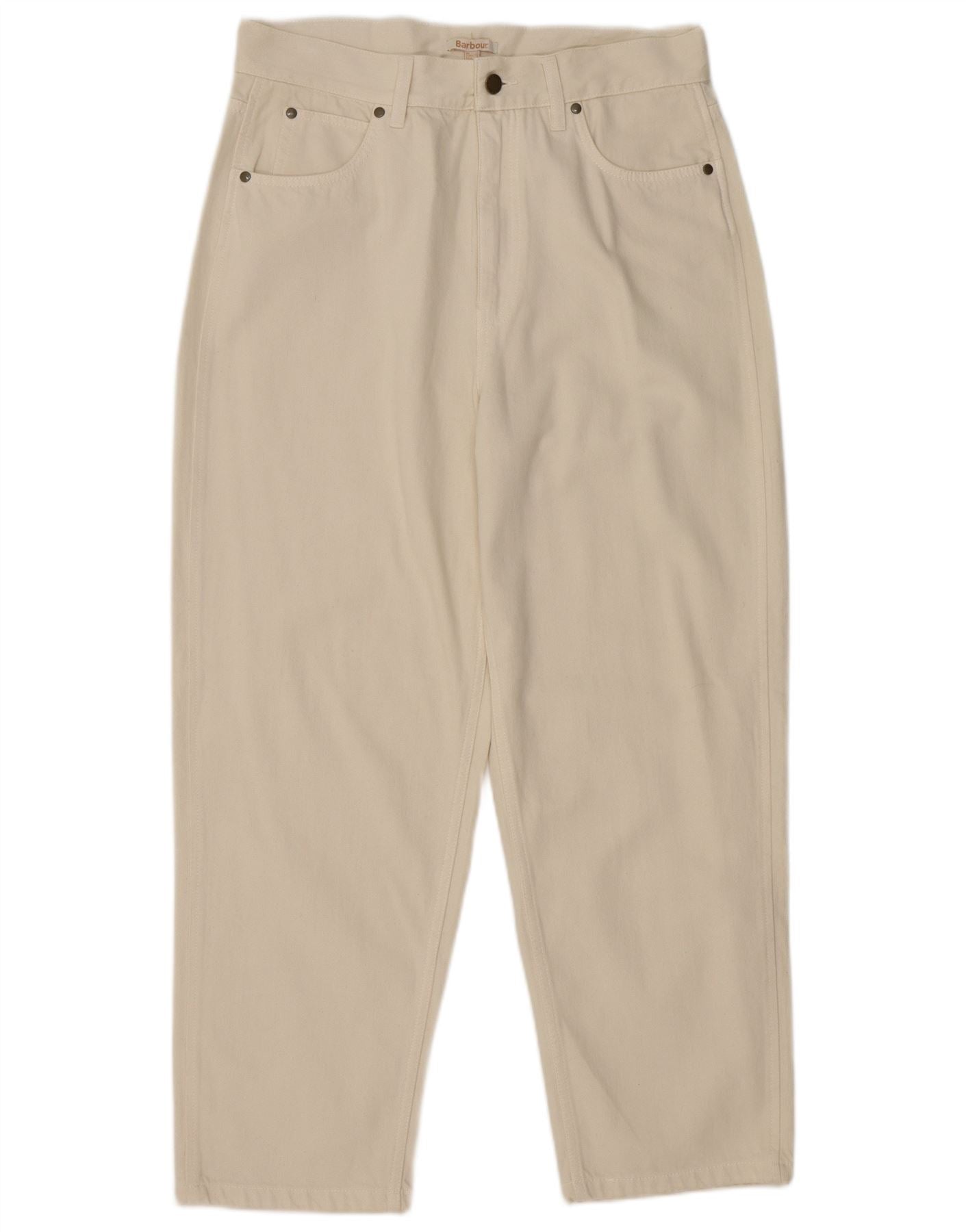 BARBOUR Womens High Waist Cropped Trousers UK 12 Medium W30 L26 Off White