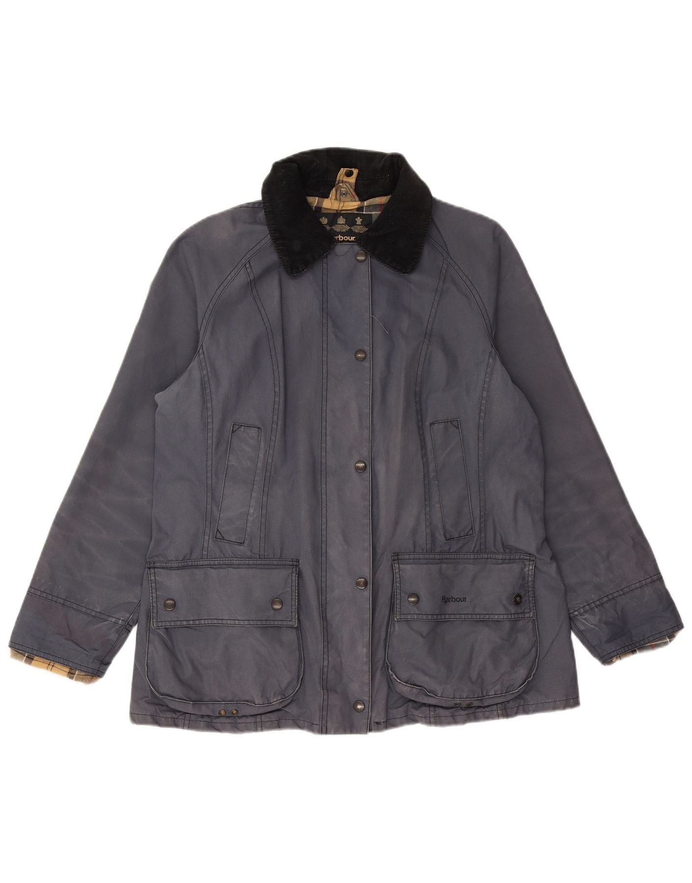 Home > Vintage Barbour-Kleidung > Jacken > BARBOUR Damenjacke aus gewachster Baumwolle, UK 12, mittelmarineblaue Baumwolle