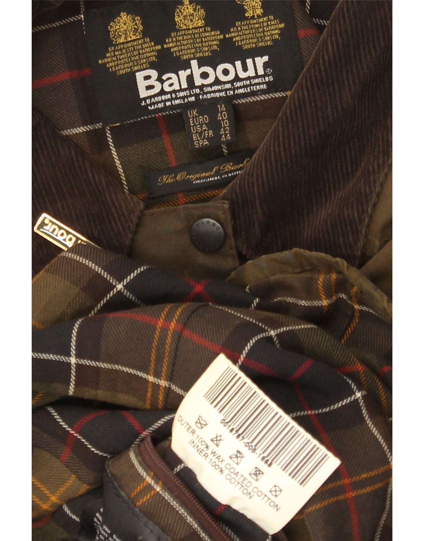 Home > Vintage Barbour-Kleidung > Jacken > BARBOUR Damenjacke aus gewachster Baumwolle, UK 14, große Khaki-Baumwolle
