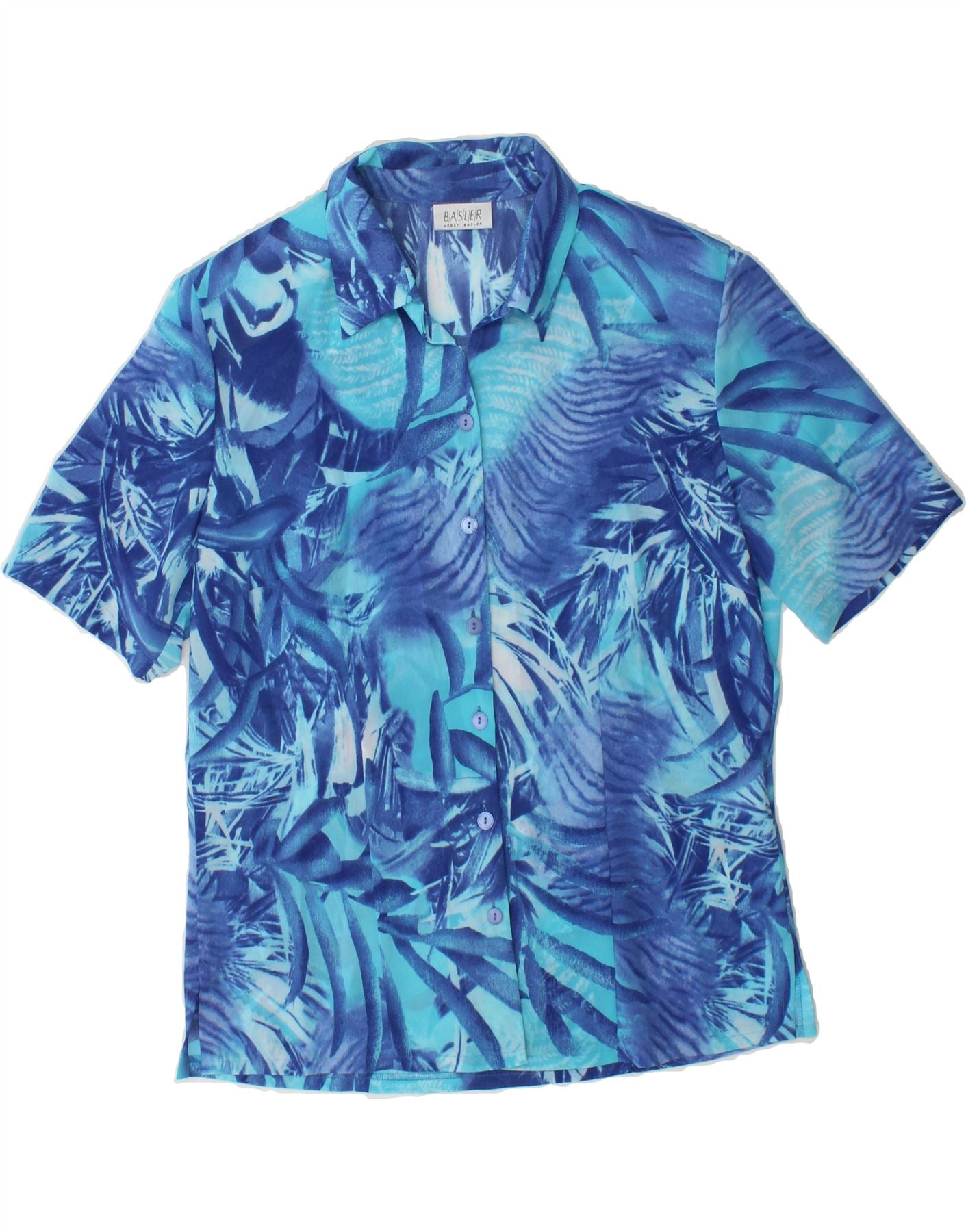 BASLER Womens Abstract Pattern Short Sleeve Shirt Blouse UK 12 Medium Blue