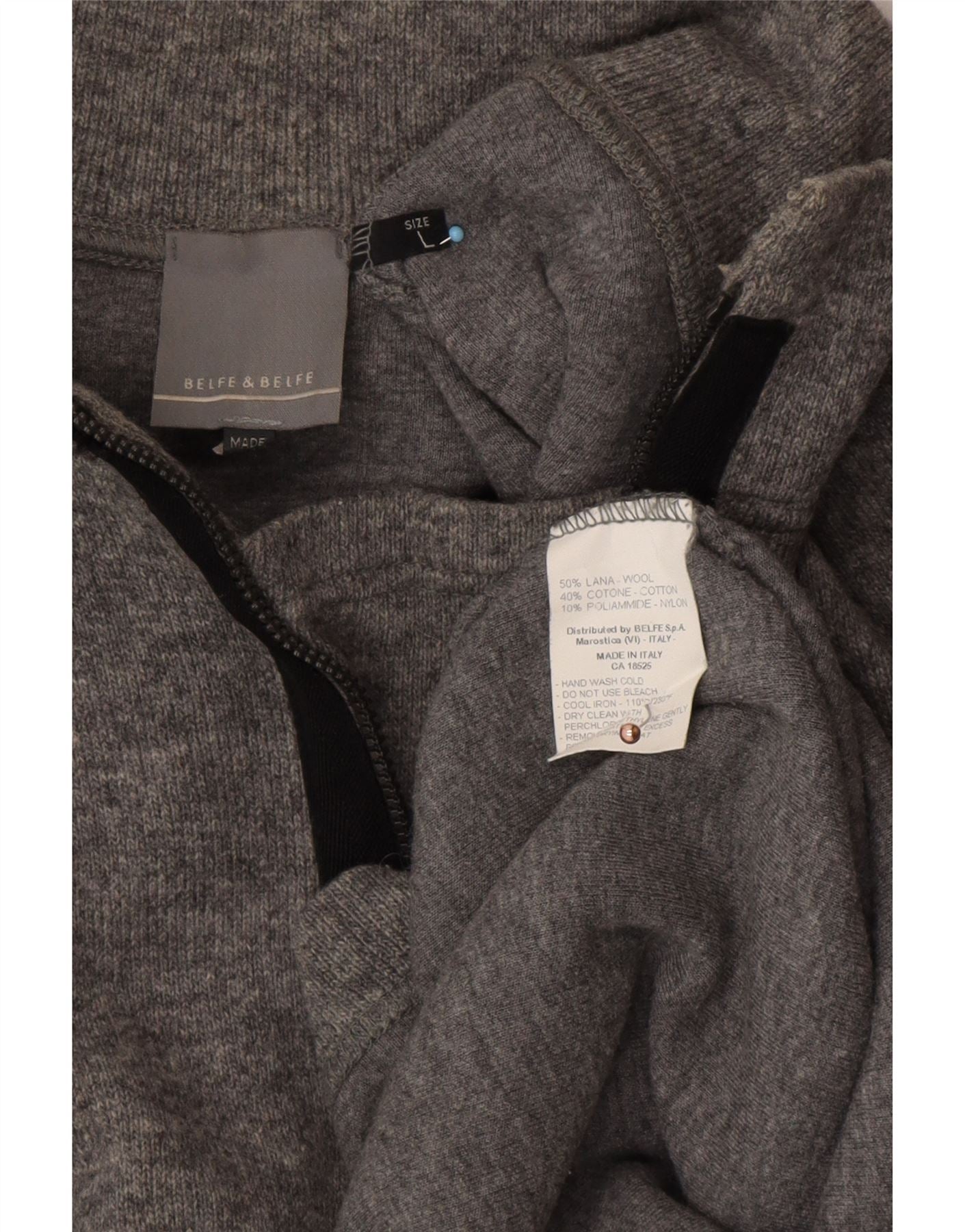 BELFE & BELFE Herren-Pullover mit Reißverschluss am Hals, große graue Wolle